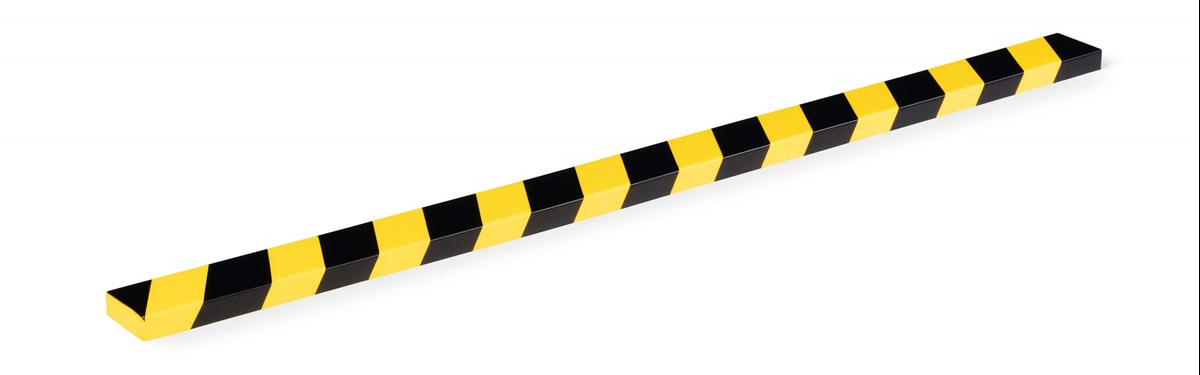 De svart/gula ränderna varnar för utstickande ytor och polyuretan skummet, som skyddsprofilen är tillverkad av, är stötdämpande. Det självhäftande väggskyddet skärs till önskad längd med en vass kniv. stark, självhäftande klisteryta av god kvalitet som bl.a. fäster på metall, trä, kartong och kakel med bäst resultat om temperaturen är 10-30°C. Färgnyanser enligt ASR A1.3 liknande RAL 1004/9003 (signal gul/signalsvart).