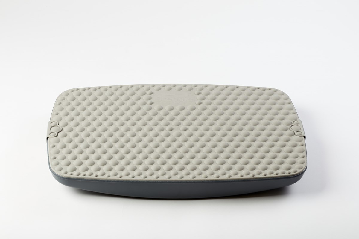 Med balansplatta Steppie och avlastningsmatta Soft Top kombinerar du den aktiva rörelsen för hela din kropp med mjuk och härlig komfort för dina fötter. En balansplatta som hjälper dig att få ett mer fysiskt aktivt och sundare liv på kontoret. Med en Steppie kan man stå längre stunder eftersom den ger en rörlighet och det inte är lika påfrestande att stå dynamiskt som statiskt. Förebygger och reducerar skador som kan framkallas av en stillasittande livsstil. Minskar led- och muskelsmärtor. Få bättre hållning och slipp smärtor i huvud, nacke och axlar. Mått: 60 x 30 cm.