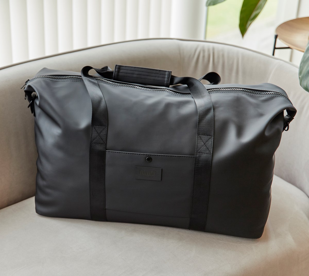 Populär väska i modern och minimalistisk design. Tillverkade av vegansk nubuckläder. Materialets yta är vattenavvisande och lätt att hålla rent. Med denna rymliga weekendväska över axeln går du inte obemärkt förbi då den ger uttryck för stil och minimalism på samma gång. Väskan har justerbar axelrem. För att ge bättre organisationsmöjligheter har väskan utrustats med en ficka med blixtlås på ena sidan och en liten ficka med tryckknapp på den andra. Rymmer 40 liter. Mått: 43 x 55,5 x 22 cm.
