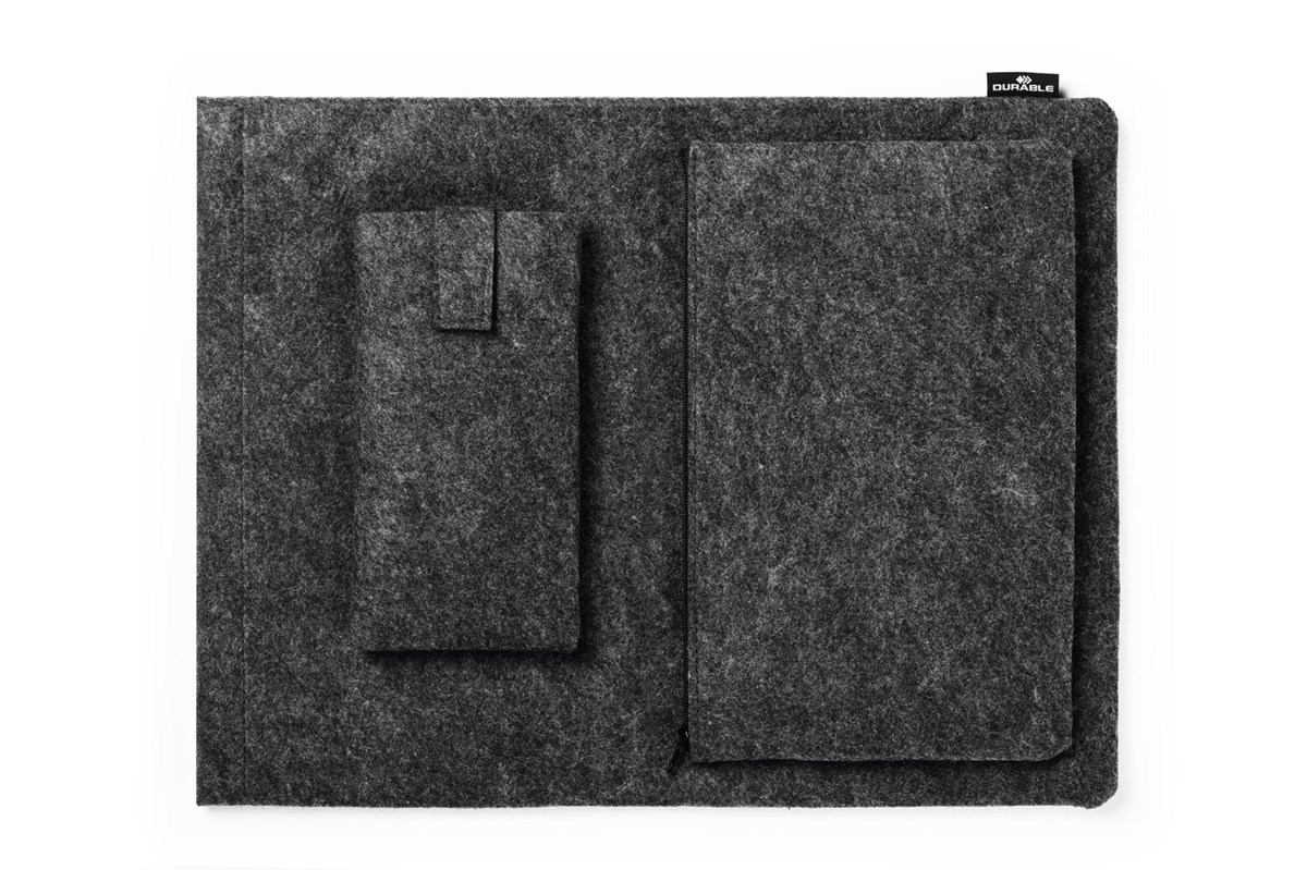 Lätta och smidiga att packa ner i ryggsäcken eller väskan och minskar risken för repor och skador, samt håller ordning och reda på dina saker. I detta set ingår en laptop sleeve för laptops upp till 16,4"", och ett tillbehörsetui, som båda stängs med en dragkedja av hög kvalitet. Dessutom ingår även ett mobiltelefonfodral som stängs med kardborrband. Fodralen och etuiet kan sättas ihop med hjälp av tryckknappar - allt blir en enhet!