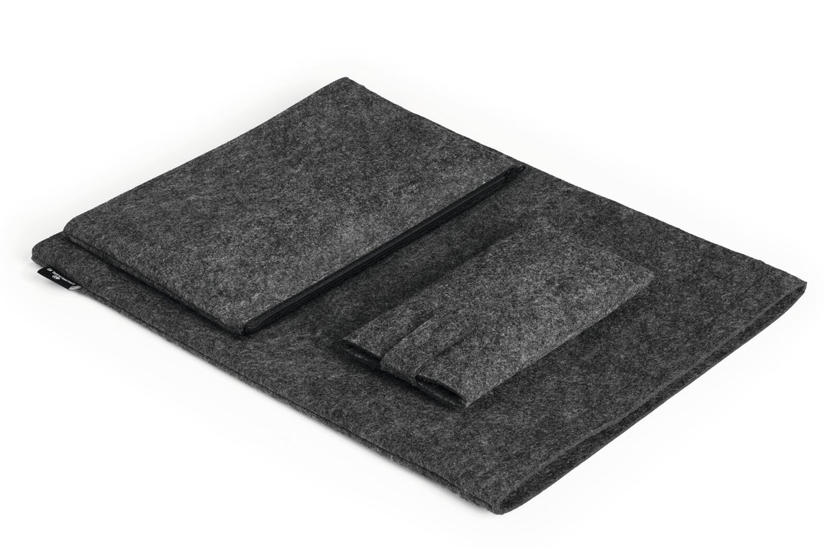 EFFECT-serien som dessa MultiBag fodral ingår i, tillverkas av ett mjukt, ljuddämpande och tåligt filtmaterial, tillverkat av 60% återvunnen PET. Produkterna i serien är 100 % återvinningsbara och förpackas hållbart med resursbesparande och plastfria material.