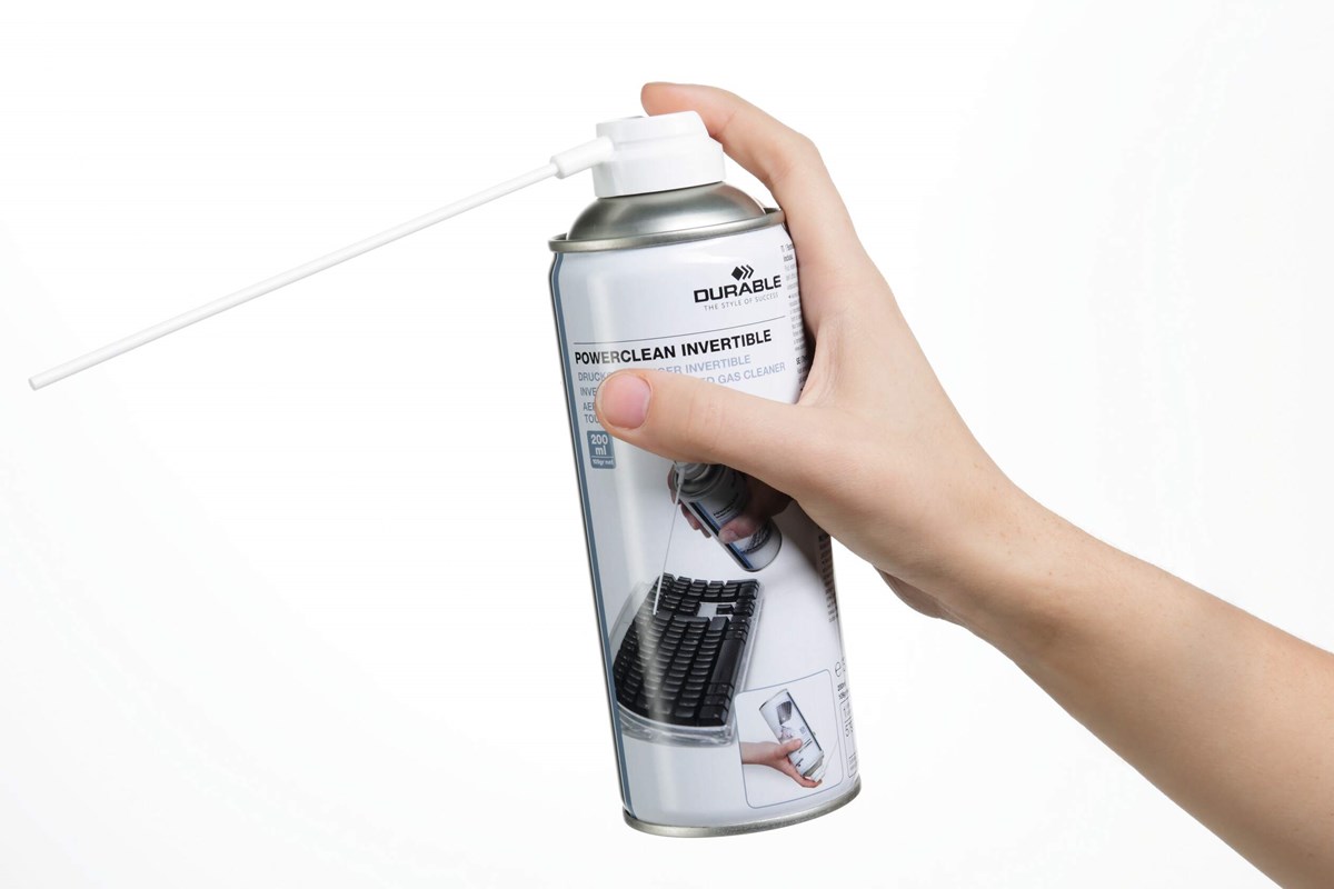För rengöring av svåråtkomliga eller känsliga ytor t.ex. skrivare, tangentbord samt foto- och filmkameror. Med förlängningsrör för precision vid sprayning. Flaskan kan användas i valfri vinkel. Brandfarlig drivgas.