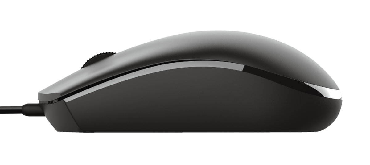 Lättanvänd mus som passar både vänster- och högerhänta Optisk sensor med 1200 DPI som fungerar på nästan vilken yta som helst. 160 cm lång USB-kabel för bra rörelsefrihet.