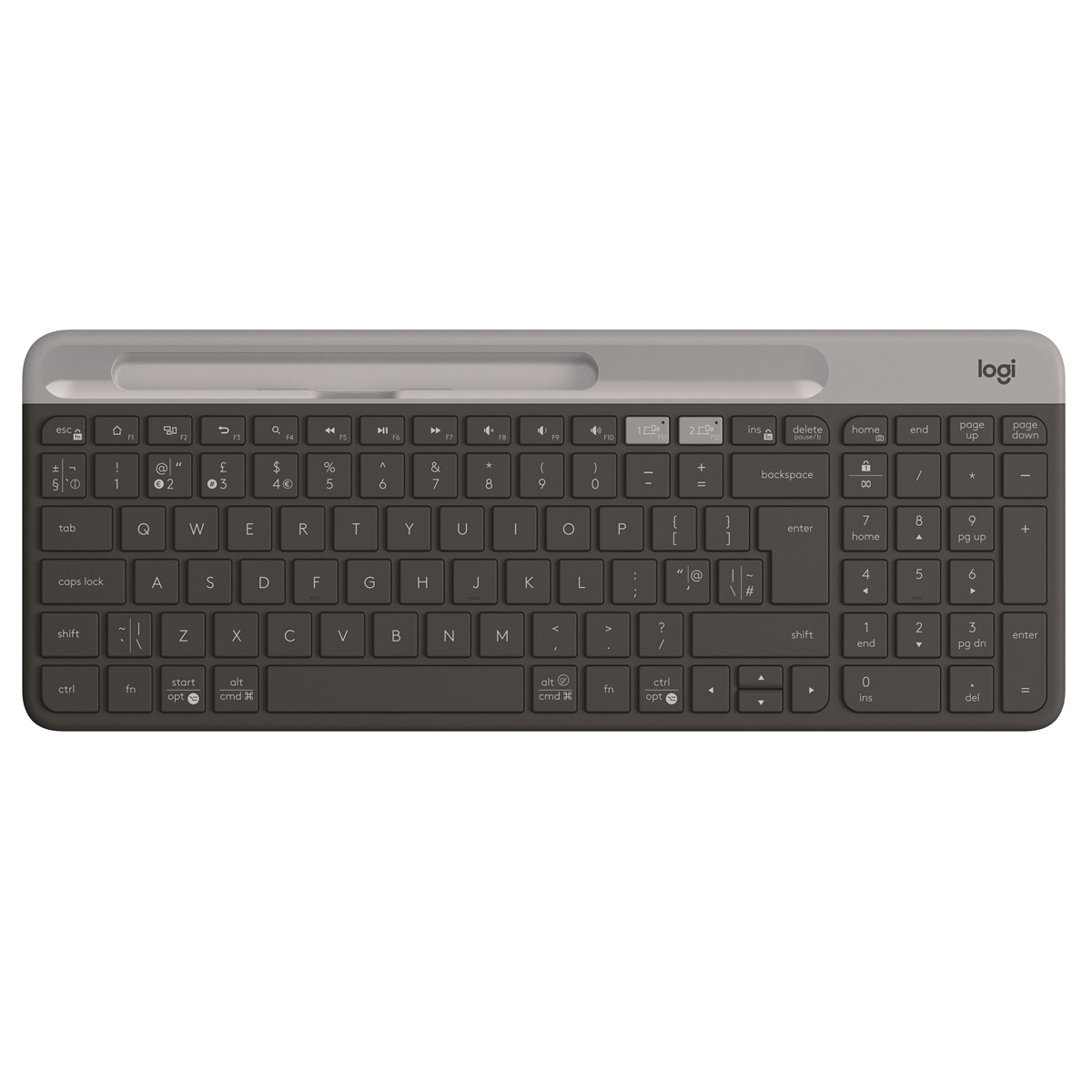 Trådlöst tangentbord för flera enheter. Med Easy-Switch kan du koppla och snabbt växla mellan flera enheter, så att du smidigt kan skriva på datorn, telefonen eller surfplattan genom att vara ansluten via usb-mottagaren med 2,4 GHz och/eller trådlös Bluetooth-teknik. Mått: 37,35 x 14,39 x 2,13 mm. 1 års garanti.