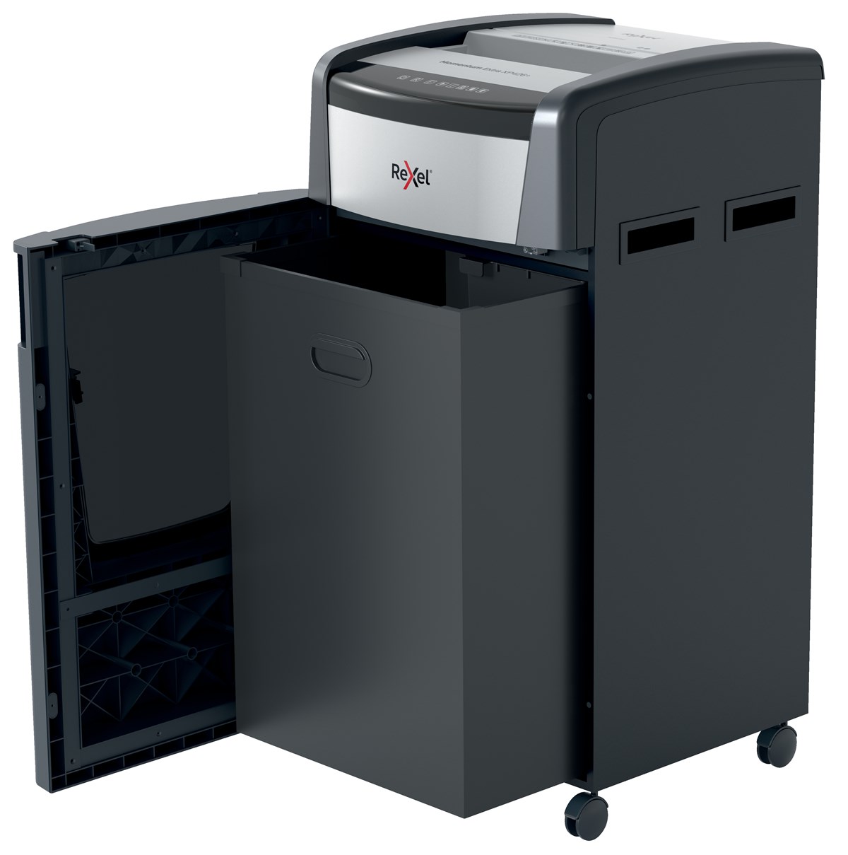 När makuleringsbehovet är stort eller bredd. Inmatningsbredd 310 mm. 55 dBA. Strimlar häftklammer, gem, plastkort och cd/dvd. JamFree-teknik förhindrar pappersstopp. Makulerar upp till 26 ark på en gång genom det manuella inmatningsfacket. Säkerhetsklass: P4 4x30 mm. Volym: 120 liter. Vi rekommenderar att man använder oljeark var tredje gång man tömmer dokumentförstörarens avfallsbehållare.