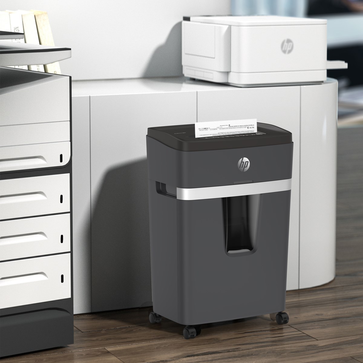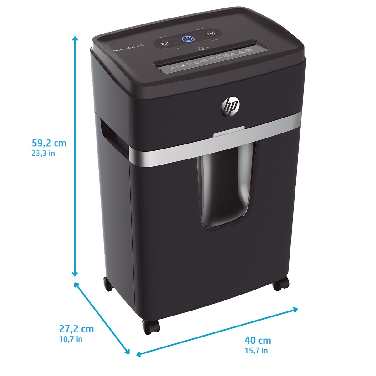 Pålitlig dokumentförstörare som tar liten plats på ditt kontorsrum eller på hemmakontoret. Makulerar upp till 18 A4-ark. Stoppar och matar tillbaka papperet för att undvika pappersstopp om du matar i för många ark per gång. Överbelastnings- och överhettningsindikator. Genom det stora fönstret ser du enkelt när tömning behövs. Volym: 25 liter. Strimlar kreditkort, gem eller häftklammer. Partikelstorlek: 4 mm x 35 mm, Skärhastighet: 1,6 meter per minut. Säkerhetsnivå: P-4/DIN 66399. Användningsområde: liten kontorsmiljö. Driftstid: 20 minuter. 400x272x592 mm.