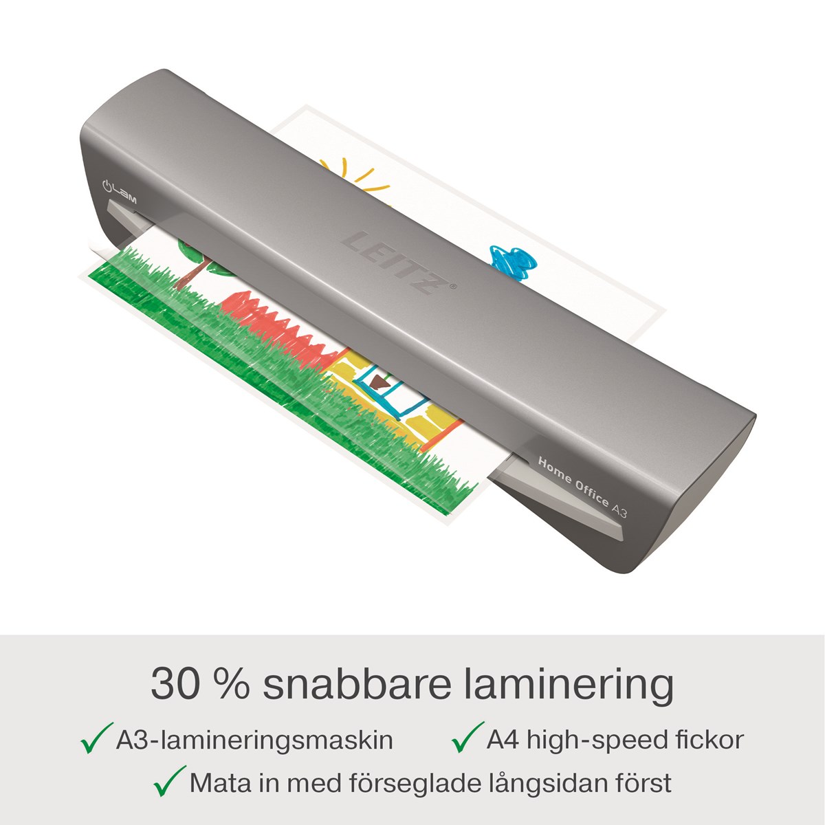 Laminerar ett A4 med 80 mikrometer på cirka 45 sekunder och är även kompatibel med A4-höghastighetsfickor