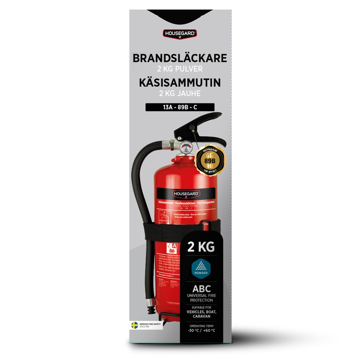 Högsta släckeffekt gör att du kan släcka större bränder med en brandsläckare från Housegard än med de flesta andra släckare på marknaden. Innehåller ABC-pulver och kan användas mot alla typer av bränder. Brandklass: A B C. Effektivitetsklass: 13A 89BC. Släcker bränder i alla material såsom organiska material (papper, trä, tyg etc.), brännbara vätskor, gas och elektriska anläggningar upp till 1000 volt.
