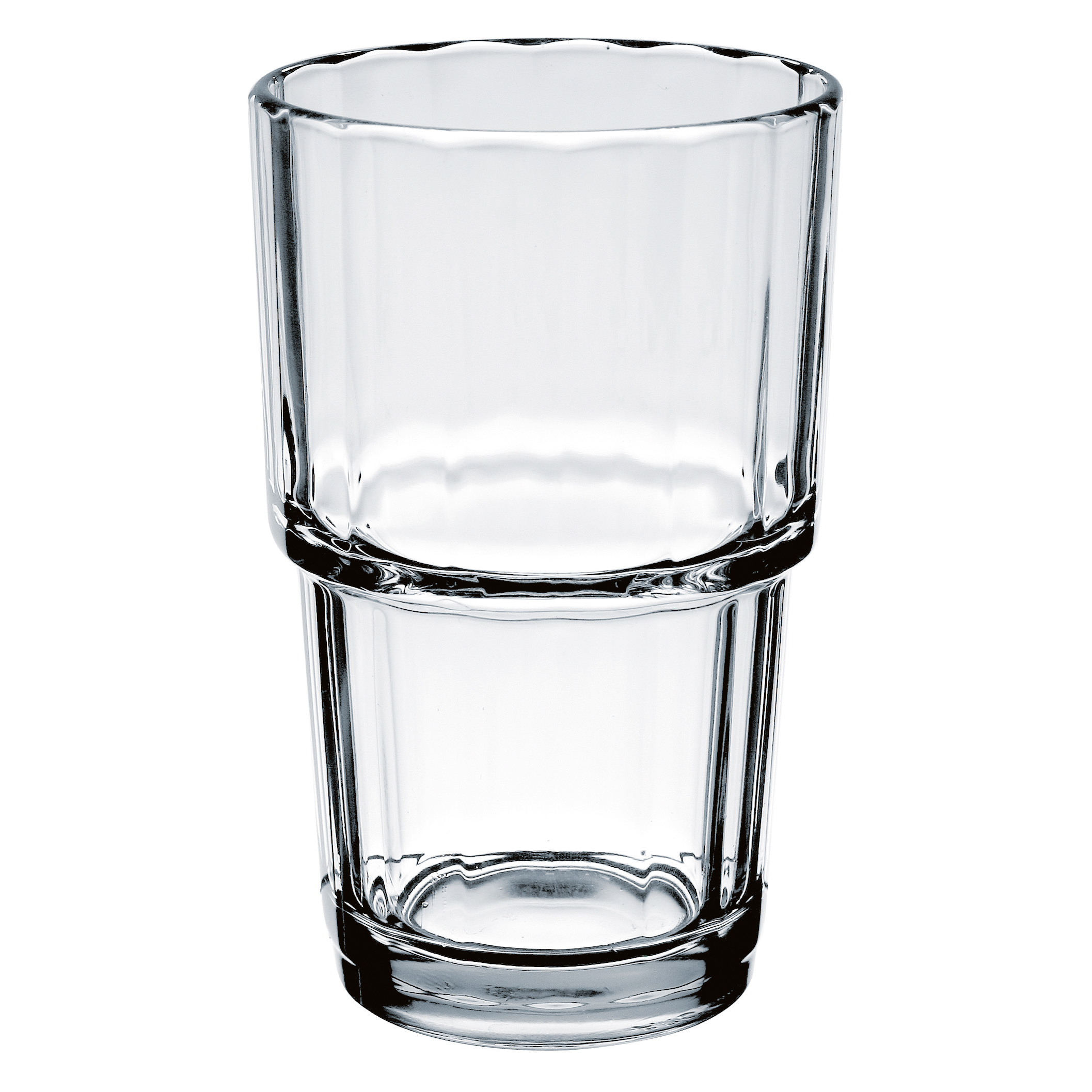 Stapelbart dricksglas i fullhärdat glas, ett starkt och extra resistent glas perfekt för den professionella verksamheten. Glaset har en hög härdighet mot stötar, upp till 5 gånger tåligare än glas som inte är härdat. Dricksglaset tål värmevariationer på 130 grader.