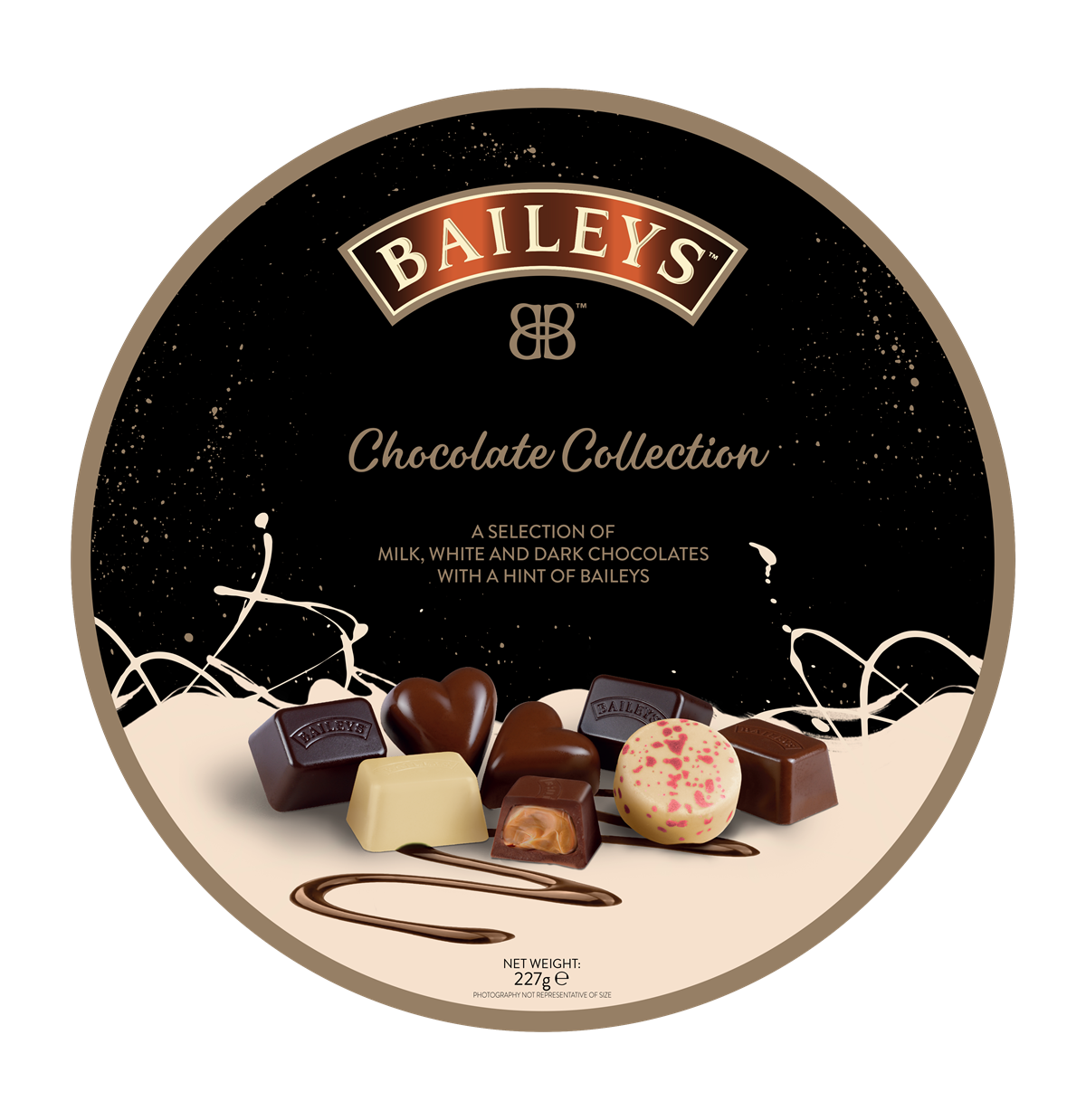 Utsökta praliner av vit, mjölk- och mörk choklad smaksatta med äkta Baileys Original Cream likör. 227 g.