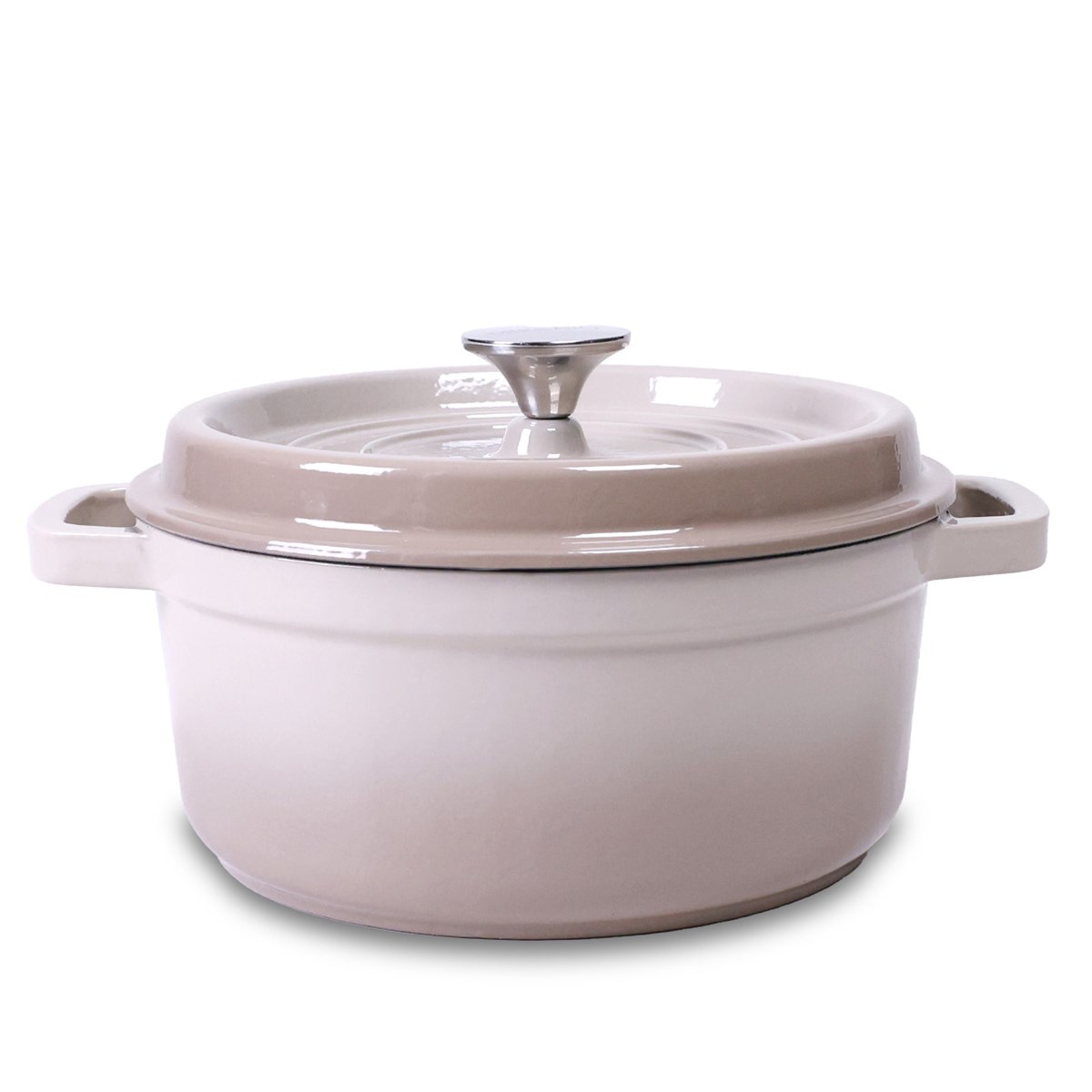 En robust gjutjärnsgryta för vardag och helg med jämn värmefördelning. Lockets droppskydd ger saftiga, smakrika resultat och emaljeringen gör grytan både snygg, rostskyddad och lätt att rengöra. Perfekt för grytor, bröd och såser. Vikt: 5 kg.