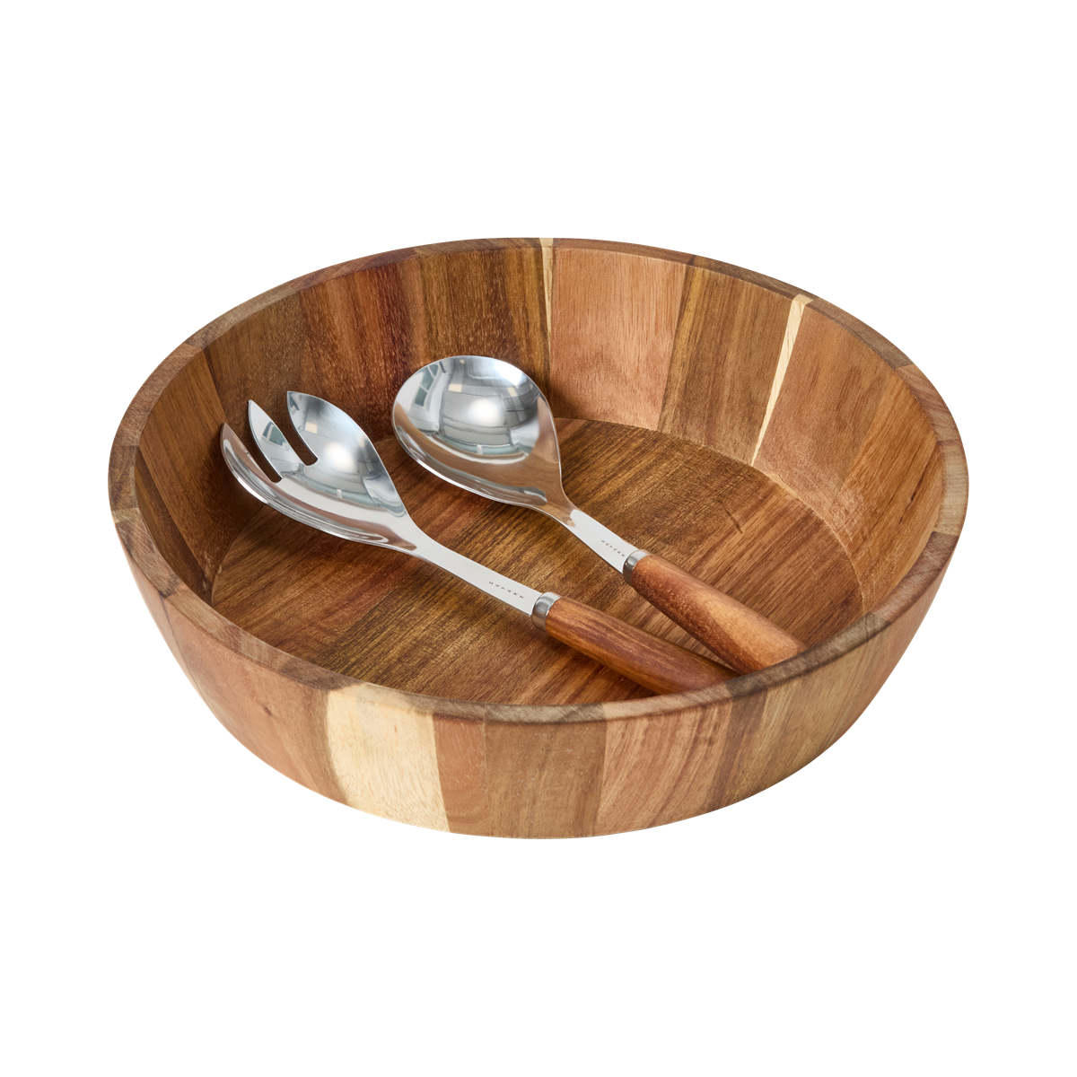 En rymlig salladsskål i vackert oljat akaciaträ som kombinerar naturlig och stram design med funktionalitet. Den breda, låga formen lyfter fram råvarorna och de matchande salladsbesticken gör serveringen komplett. Skål: Ø 29 x 6,5 cm. Bestick: 24 cm.