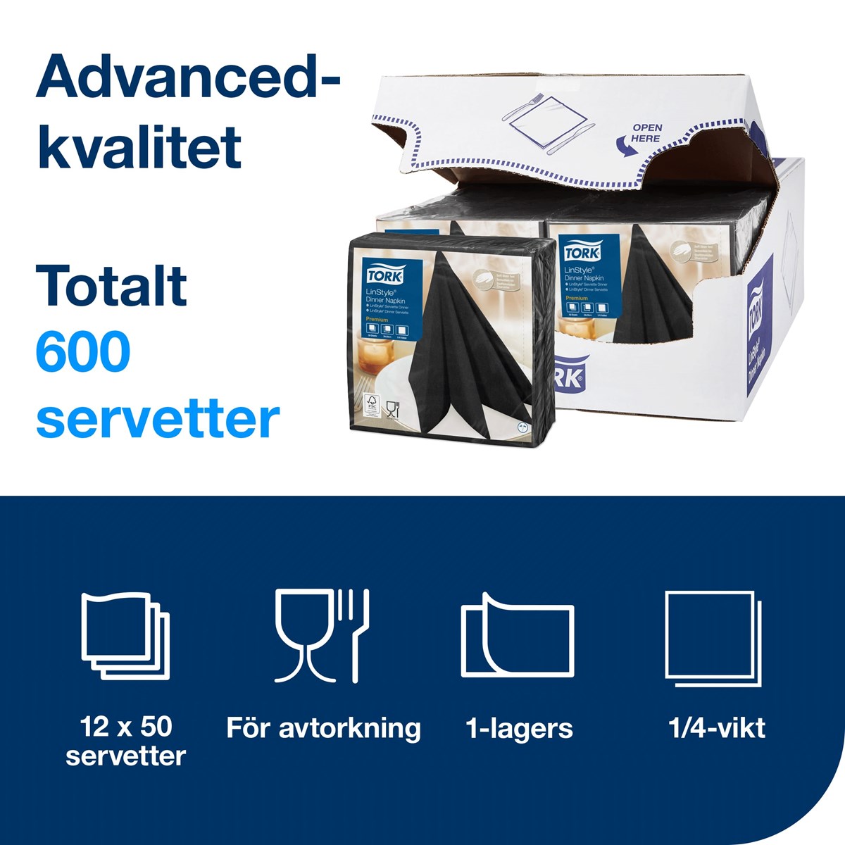 Servett Tork LinStyle 39x39 cm svart 50/fp