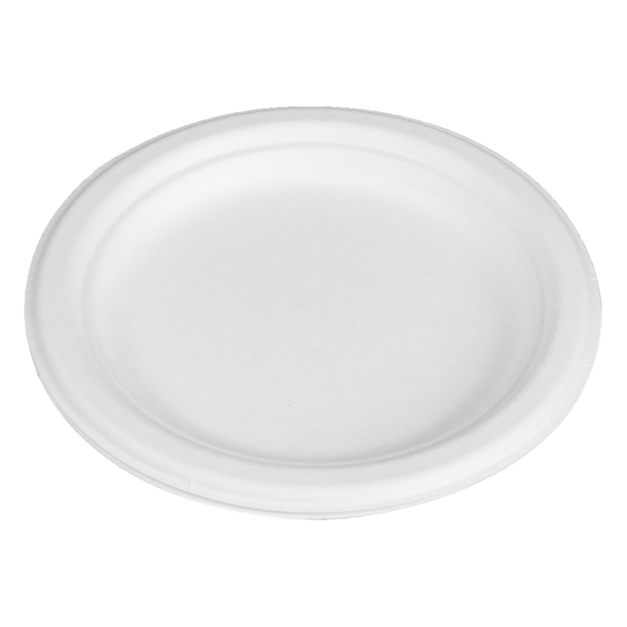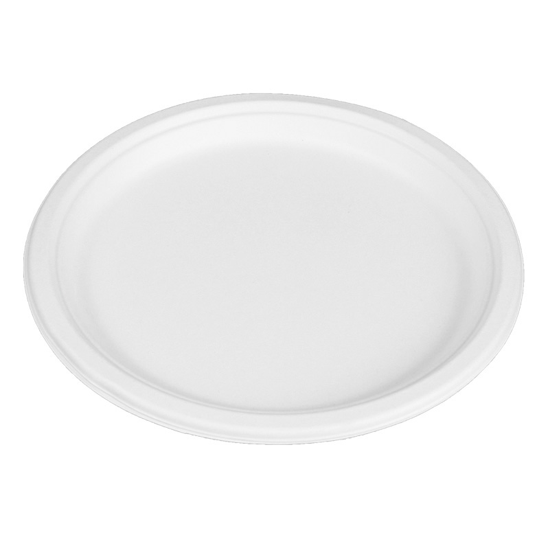 Stabil engångstallrik gjord av bagasse, ett fibermaterial som bildas vid utvinning av socker ur sockerrör. Fungerar i mikrovågsugn upp till 100 grader. Vita. 50 st/förp., 1000 st/kartong.