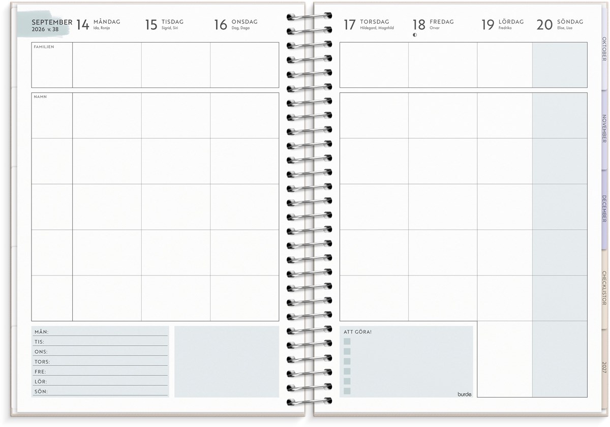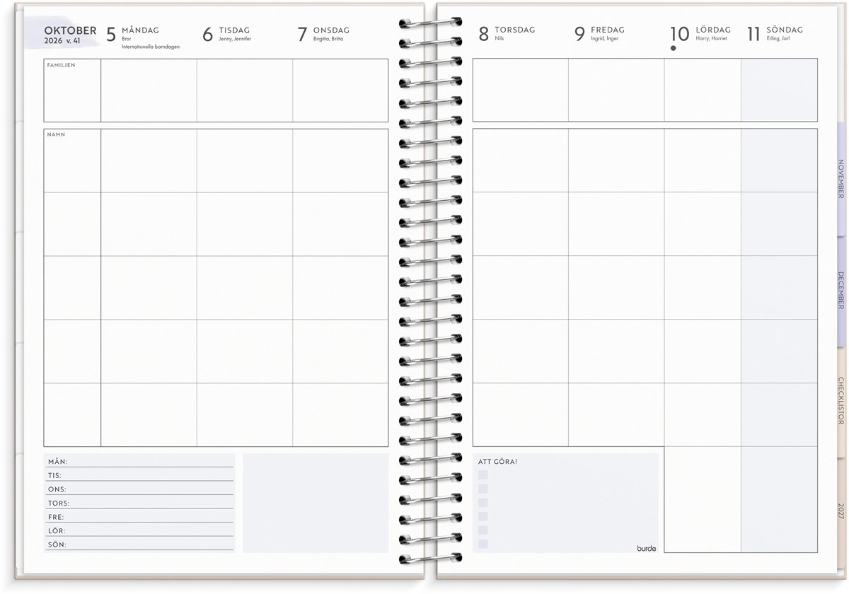 Familjelivet gjort enkelt! Att hålla reda på vad alla i familjen gör varje dag är inte en enkel uppgift. Med Life Organizer Family får du nyckeln som kan hjälpa dig organisera all planering, aktiviteter och kom-ihåg. Med ett vackert omslag är kalendern utformad med sidor som innehåller check-listor, familjens mål och tydliga uppslag för både veckor och månader, med plats för att skriva ner varje familjemedlems aktiviteter. Strukturera familjelivet och frigör mer tid för fredagsmys och nöjen som ger det lilla extra i vardagen. Till Life Organizer Family följer även tre silverpräglade stickersark för att ge en roligare planering.
