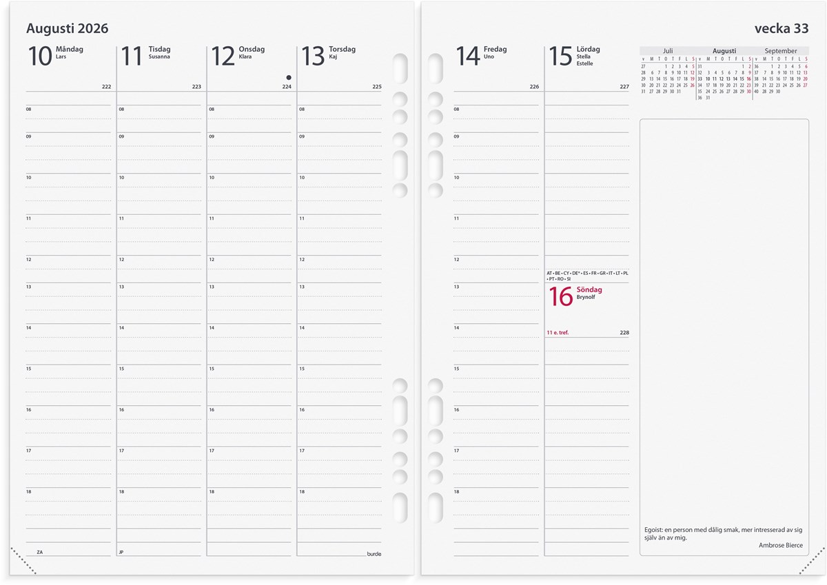 Hålad kalenderrefill till systemkalender med ringmekanism.