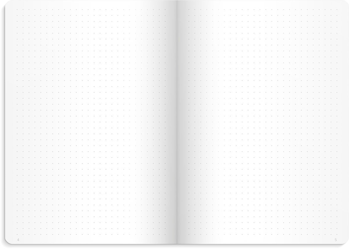 Omslag i konstläder, gummiband. Innehåller punktade sidor, 80 g, 128 blad. Inbunden. Format: A5.