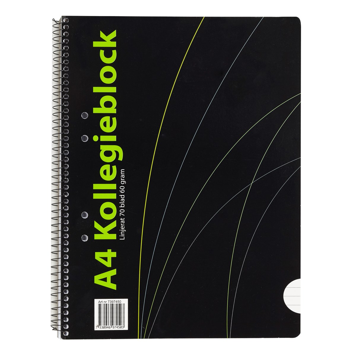 Kollegieblock med spiral och 60 g papper. 70 blad/block.