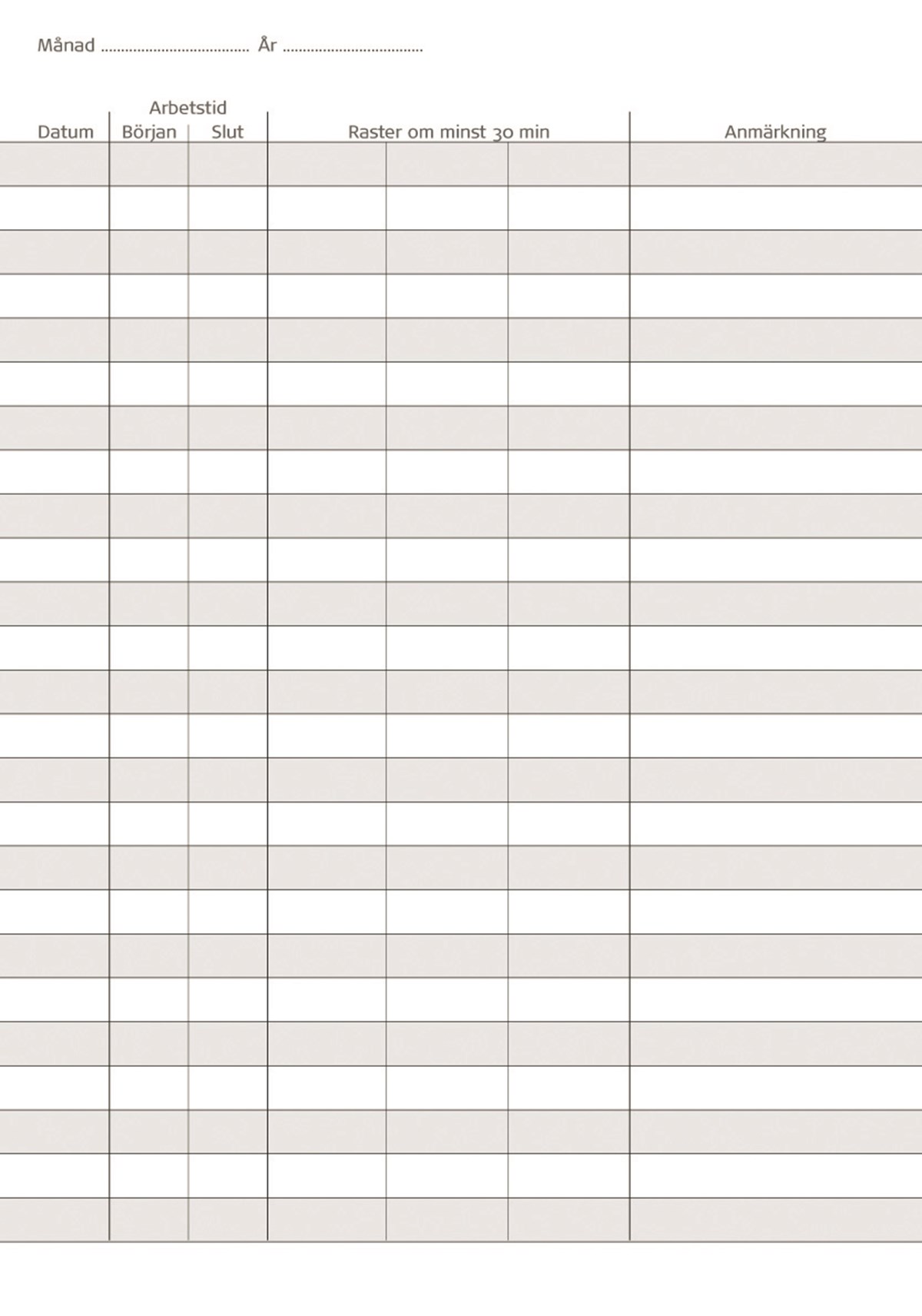 För alla slag av arbetstidsrapportering. A5-format. 32 sidor.