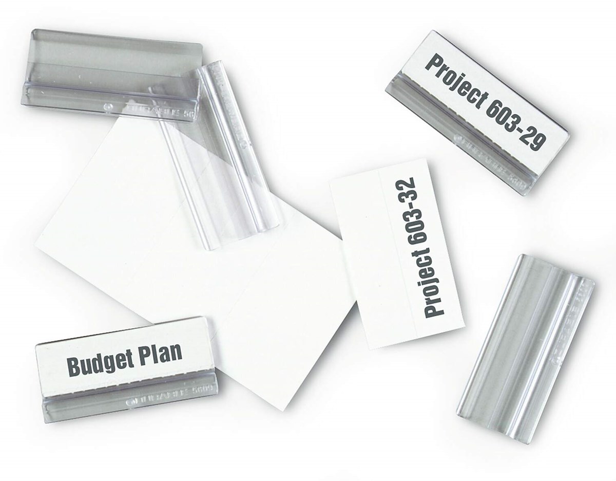 58 mm rubrikhållare med vita etiketter för att snabbt hitta den information som söks. Kläms fast upptill eller längs sidan på de färgade ramarna på plastfickorna SHERPA® PANEL. Kan flyttas i fasta steg eller tas bort helt. 5 st längs en långsida gör att hela märkfliken syns. Påse med 10 st.