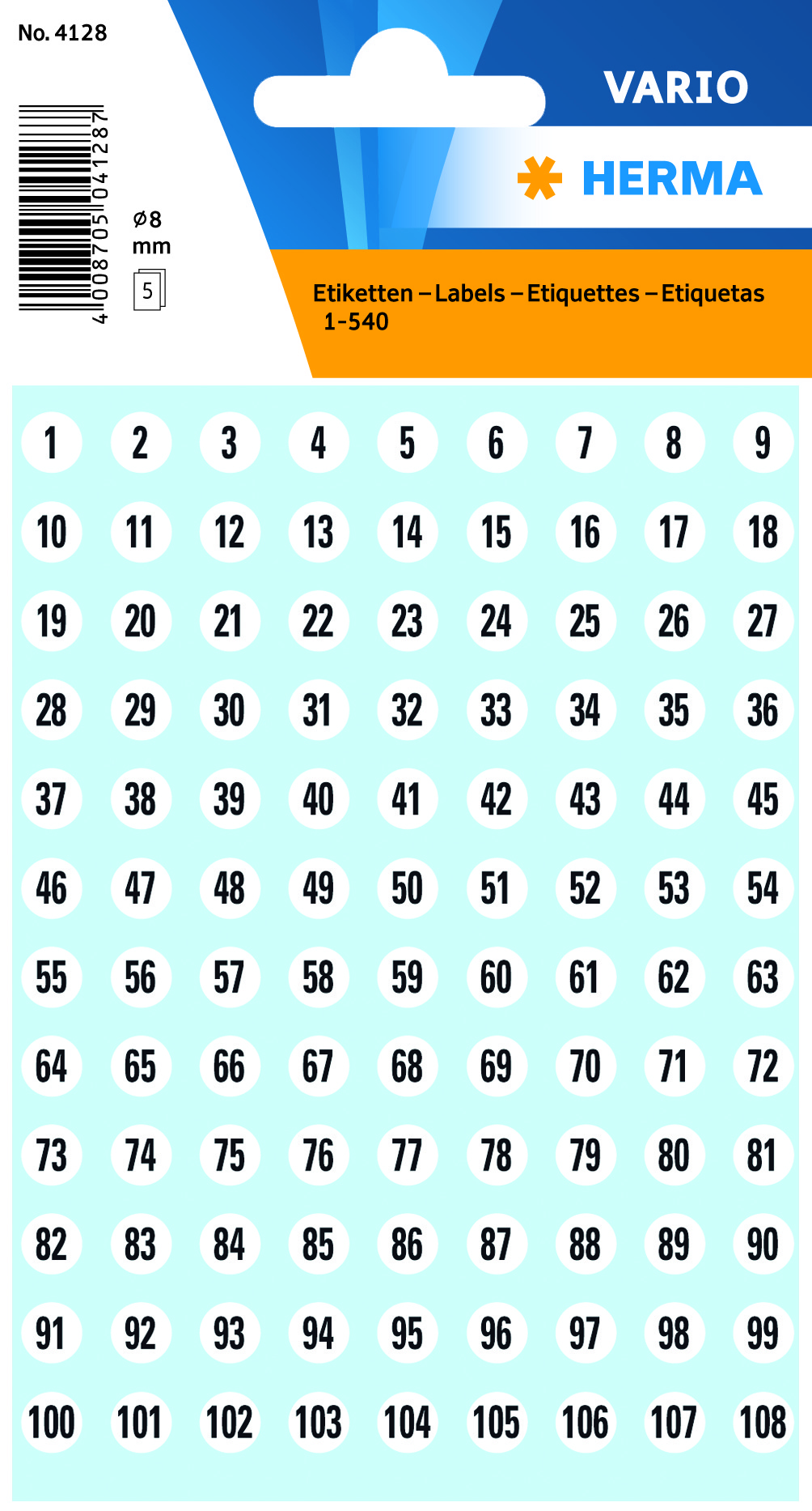 Sifferetiketter Herma 1-540 8 mm 540/fp