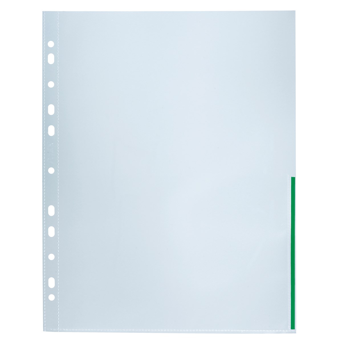Av 0,12 mm polypropylenplast. Färgmarkerad långsida. Öppen i överkant och halva höger långsida. Universalhålning. Kopiesäker. 100 st/förp.