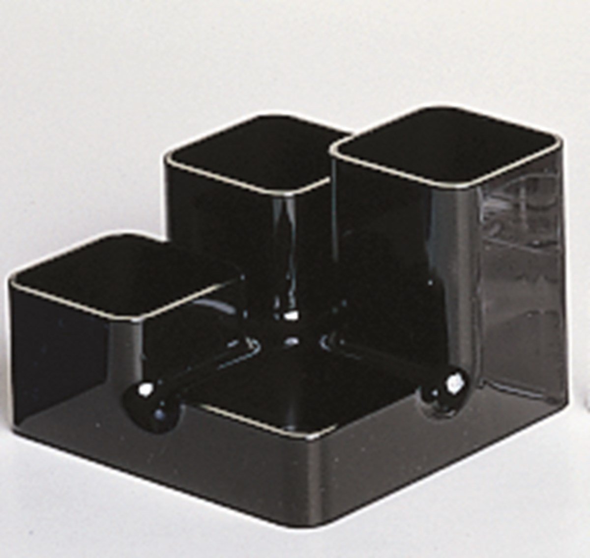 Samla pennor, saxar, linjaler och andra saker på ett och samma ställe. Det klassiska skrivbordsstället ARLAC UNI-BUTLER med högblank yta har 4 fack med innermått 5,5 x 5,5 cm. De olika facken har ett djup på 9, 7, 5 och 2,5 cm. De två högsta har en mjuk skummgummidyna i botten som dämpar ljudet när pennan eller saxen släpps ner i facket. Heltäckande mjuk skumplast på undersidan skyddar underlaget. Mått: 13 x 9 x 13 cm (BxHxD).