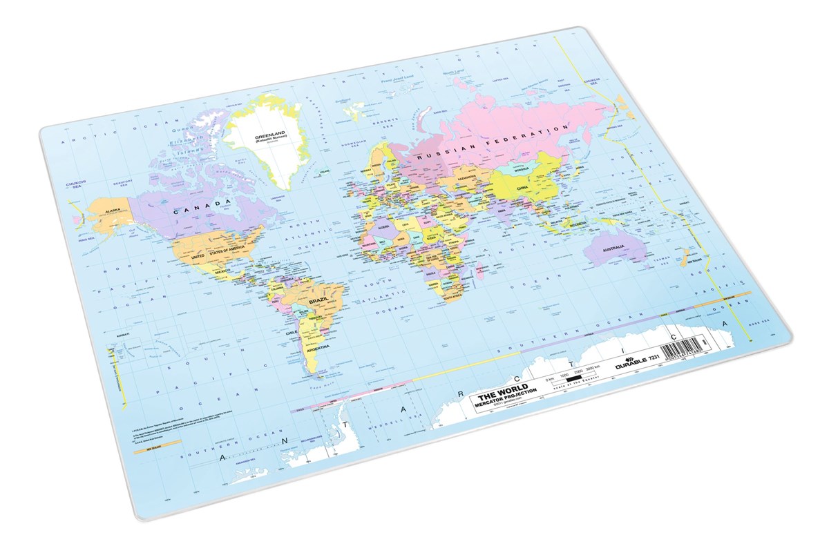 Använd skrivbordsunderlägg för en mjukare skrivkänsla samt för att skydda bordet mot slitage. Detta underlägg är tillverkad av PP med en papperskarta med omslutande plastbeläggning. Engelsk text. 100% återvinningsbar. Underlägget ligger på bordet utan att glida. Kan torkas av med en fuktig trasa på båda sidorna. Mått: 50 x 38 cm (B x H).