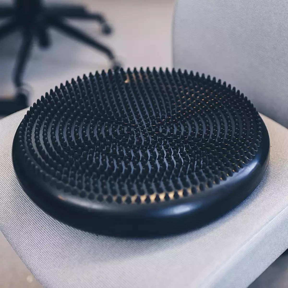 Balanskudde som förbättrar balansen och ger en omedelbart bättre sitthållning. Perfekt för din kontorsstol. Stimulerar och ökar blodcirkulationen, stärker bål- och sätesmuskler samt lindrar smärta och stelhet i rygg, nacke och axlar. Mått: 33 cm x 5,3 cm.