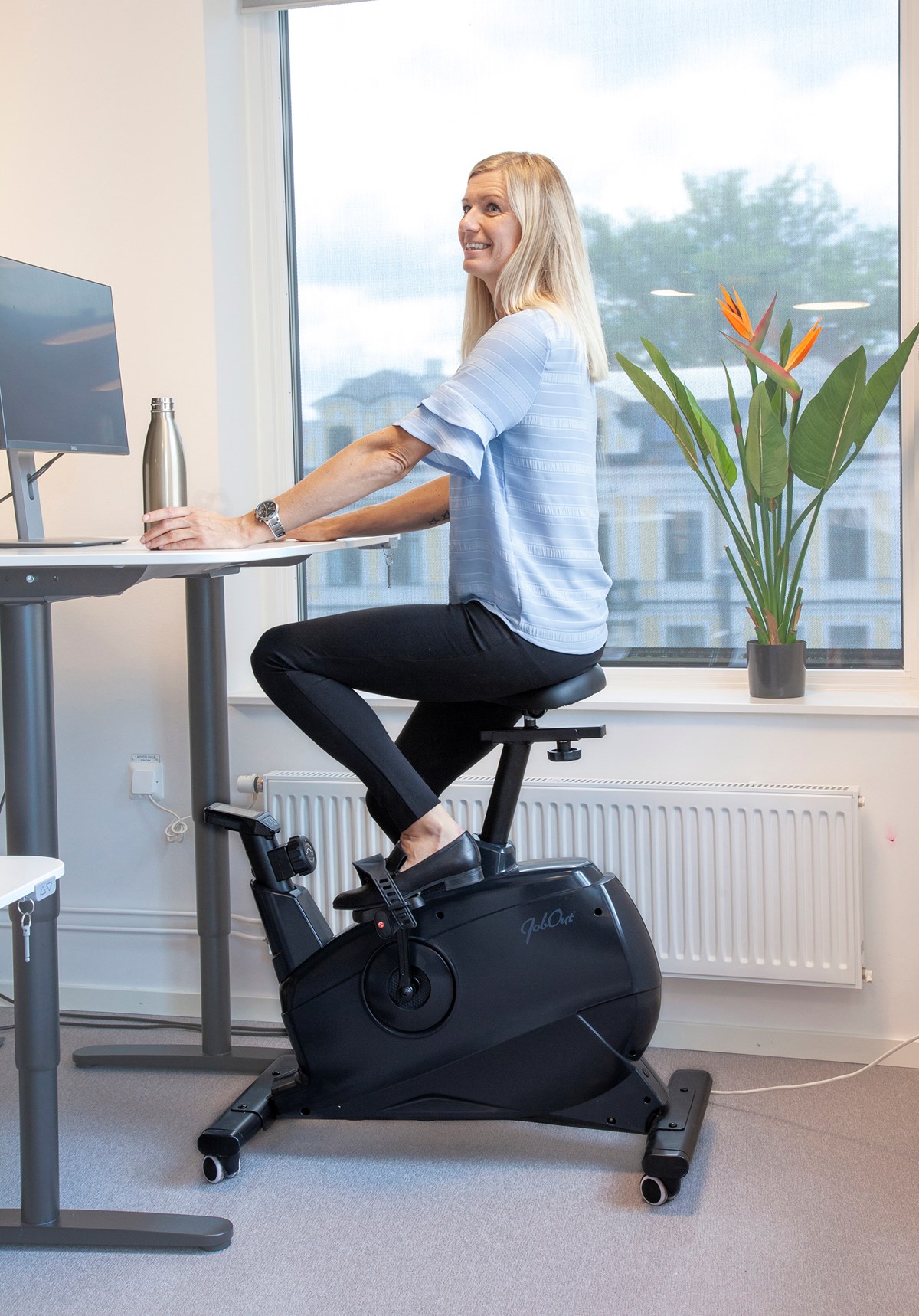 Kombinera träning och välbefinnande med ditt dagliga arbete. Under användning ökar din energinivå, produktivitet och blodcirkulation samtidigt som du förbränner kalorier. Olika trampmotstånd kan ställas in för att anpassa användningsnivån. Med hjälp av fyra rullhjul kan cykeln enkelt flyttas runt. Cykeln är även anpassad för användning av elever i skolmiljö. Rekommenderad ålder från 10 år. Vikt: 24,5 kg. Frakt tillkommer, kontakta oss för prisuppgift.