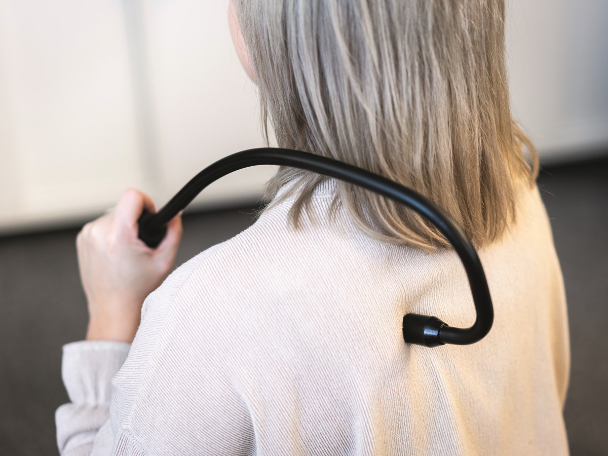 Formen på massagekroken gör det enkelt att applicera tryck på svåråtkomliga delar av ryggen. Massagekulan hjälper till att stimulera musklerna på djupet vilket ger energi, ökad blodcirkulation samt minskar värk och muskelspänningar.