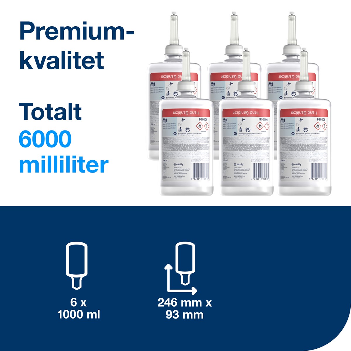 70% (v/v) denaturerad alkohol. Uppfyller kraven för EN1500, EN1276 och EN1650. Lätt gel för enkel hantering. 1 liter. 6 st/förp.