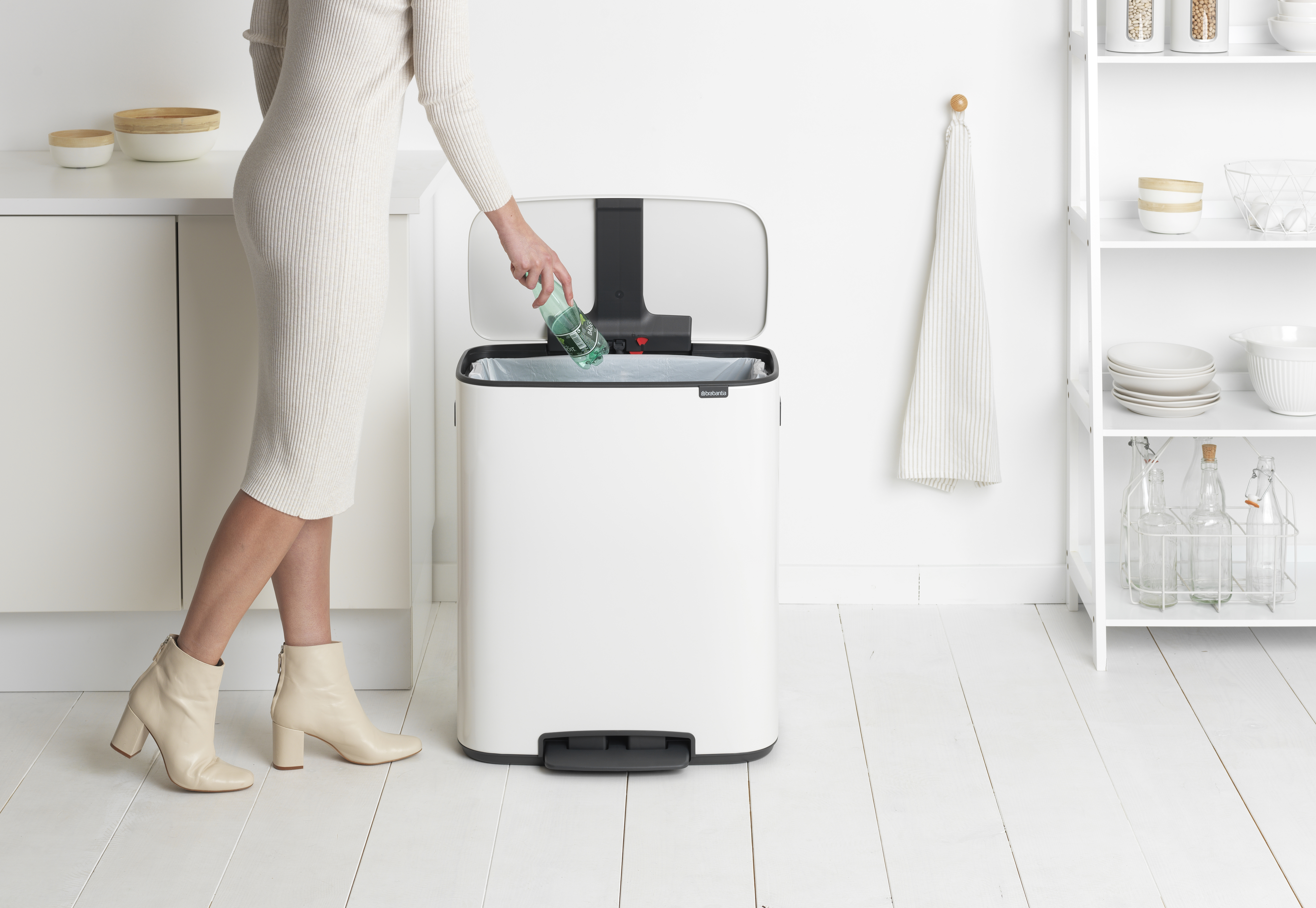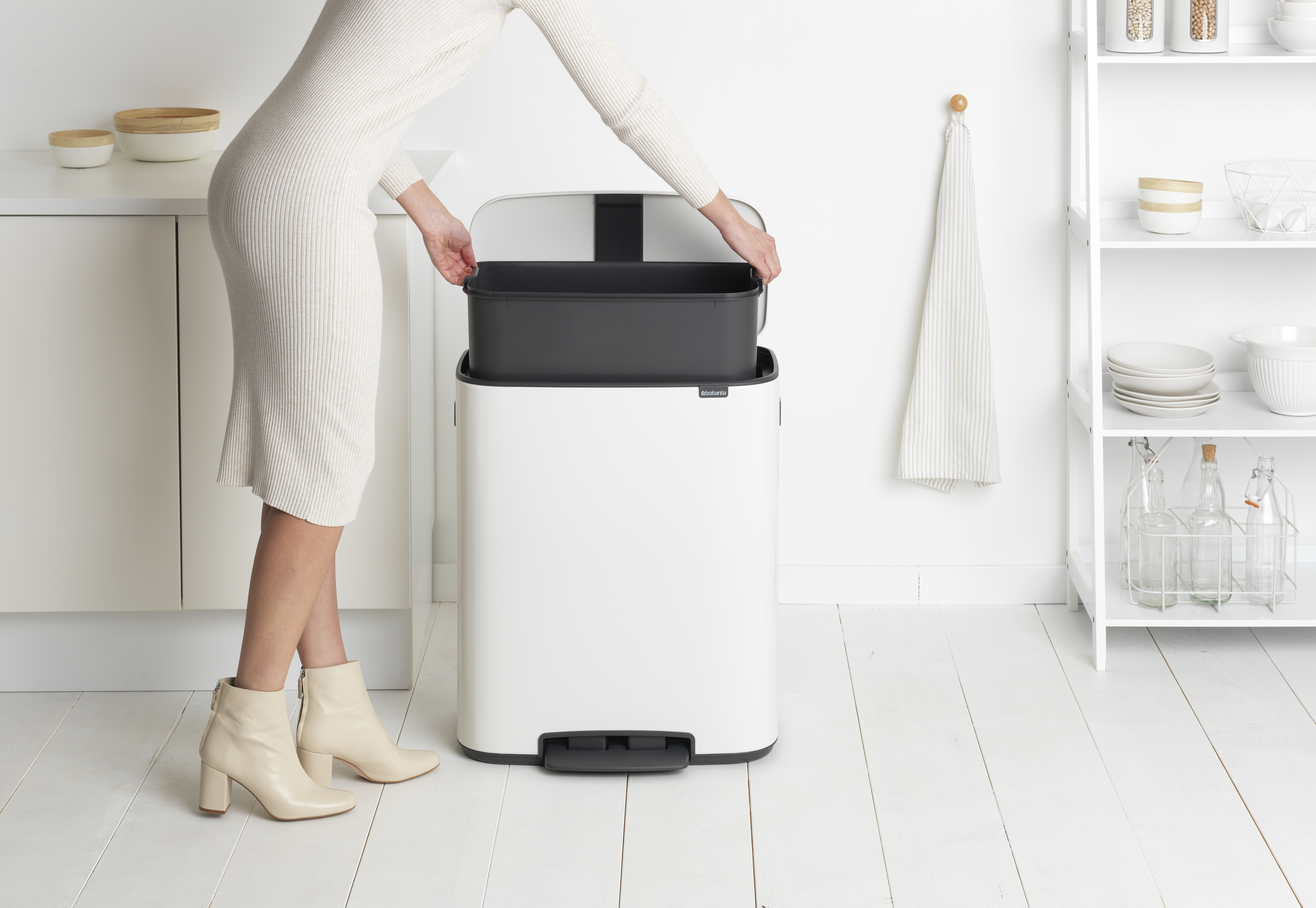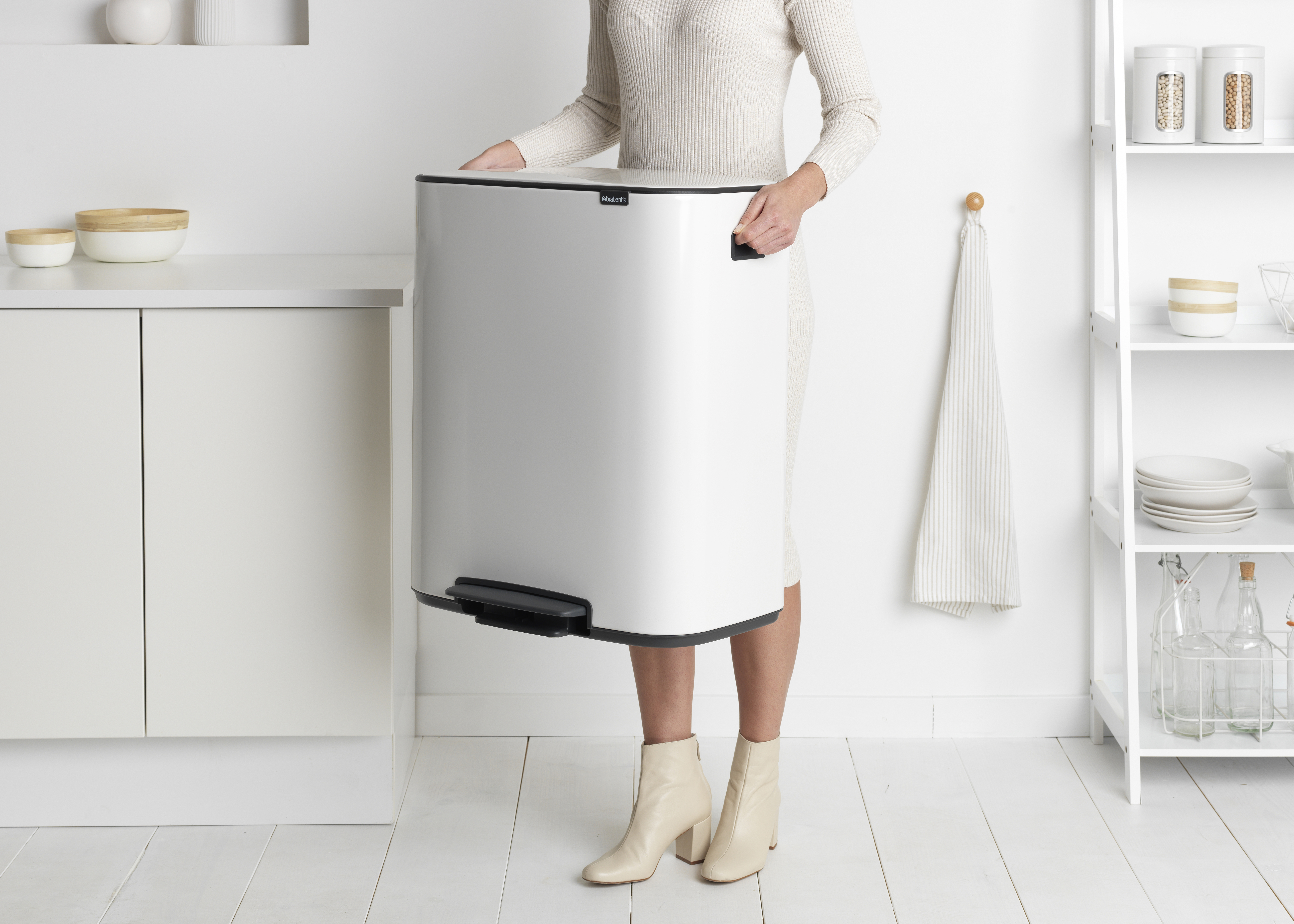 Snygg pedalhink med kapacitet på hela 60 liter. Mjukstängande lock. Integrerade handtag gör den lätt att flytta. Urtagbar plastinnerhink. Mått B x D x H: 54,1 x 36,3 x 65,2 cm. Avfallspåse PerfectFit storlek M. 10 års garanti.