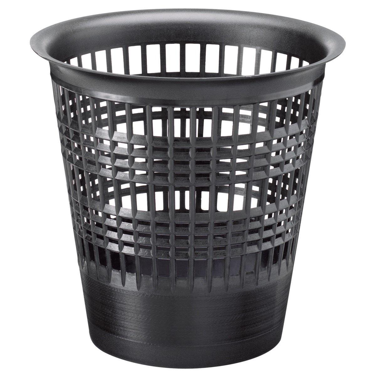 Rund papperskorg av svart plast. Rymmer 13 liter. Höjd 32 cm, diameter 29 cm.