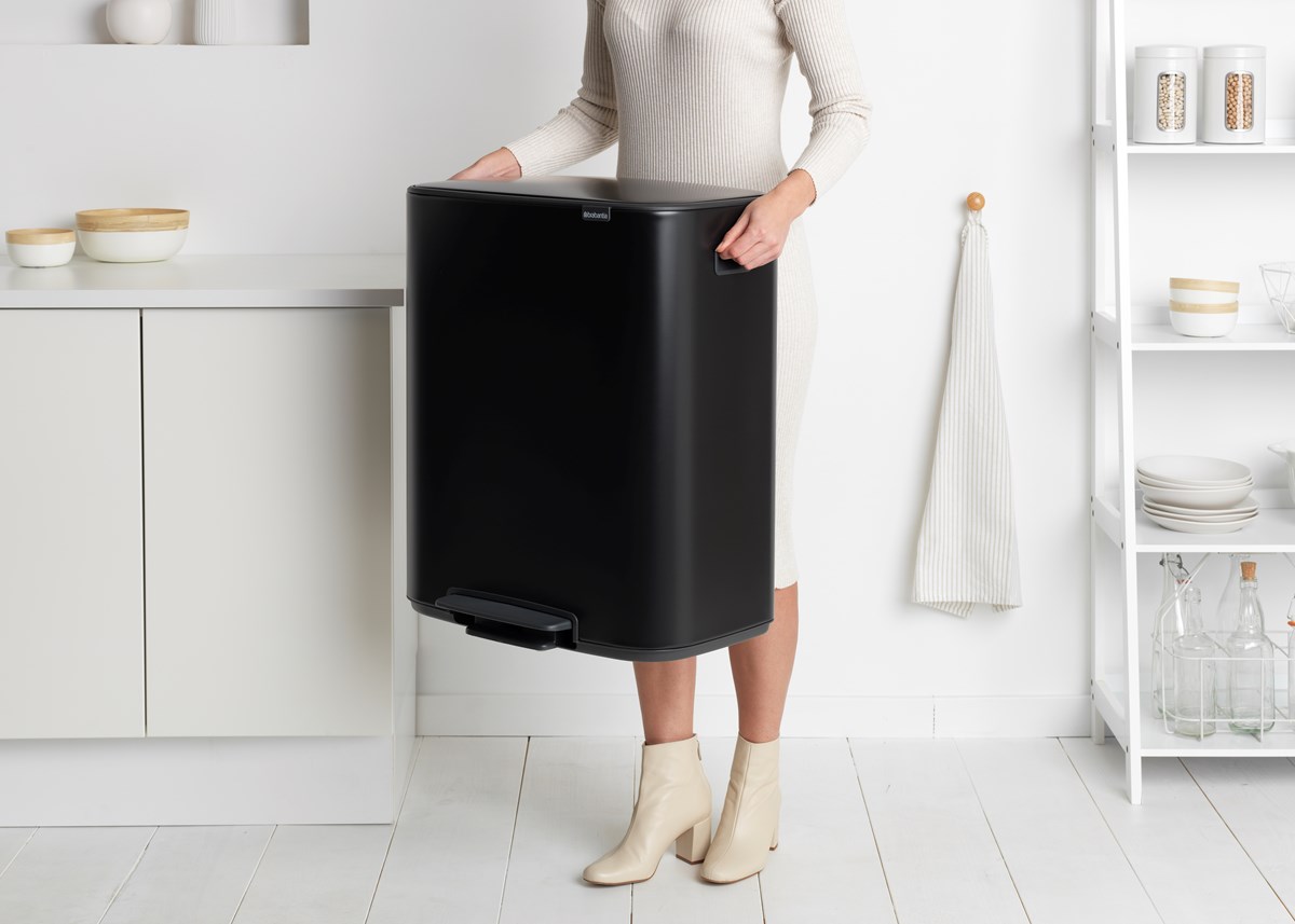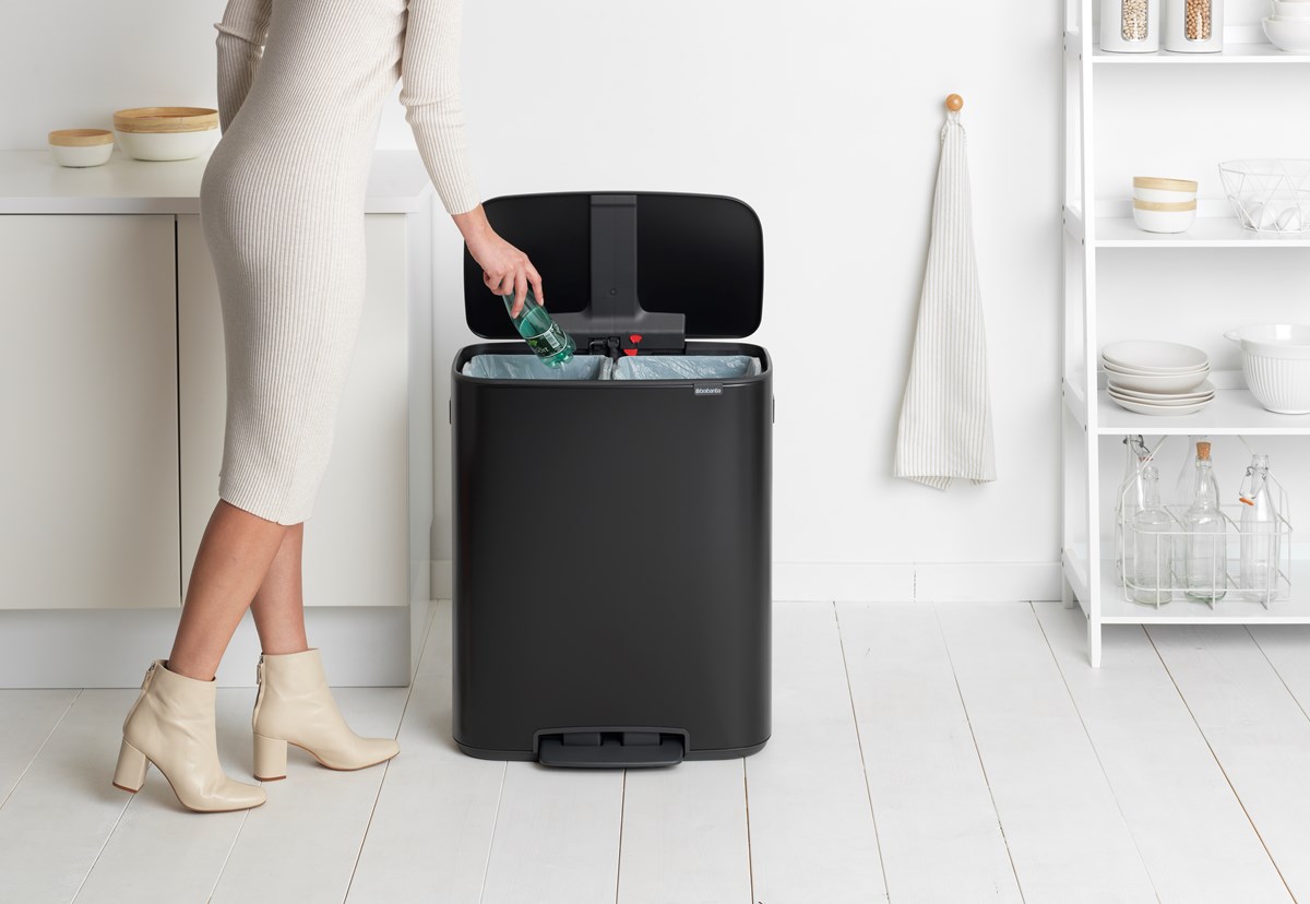 Perfekt för källsortering - två avtagbara plastinnerhinkar Rymlig - XXL volym (2 x 30L) Smidig - ett mjukstängande lock med ett lätt tryck på pedalen Lätt att flytta - två robusta integrerade handtag