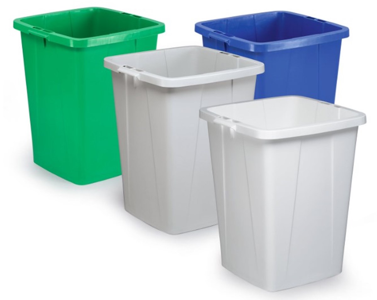 Rektangulär tunna av plast för avfall och återvinning. Praktisk även för förvaring och transport av råmaterial inom handel och industri. Försedd med bärhandtag för enkel transport. Greppvänlig undersida för enkel och säker tömning. Klämspår i hörnen gör att sopsäcken sitter säkert. Livsmedelsgodkänd. Mått (L x B x D): 51 x 48,7 x 63 cm. Volym: 90 liter. Lock köps separat.
