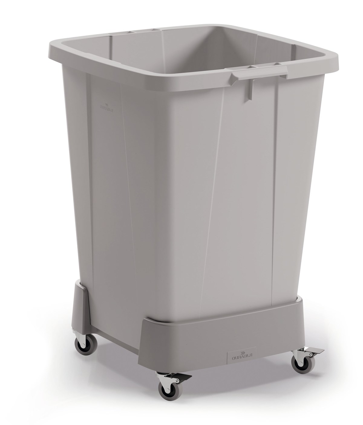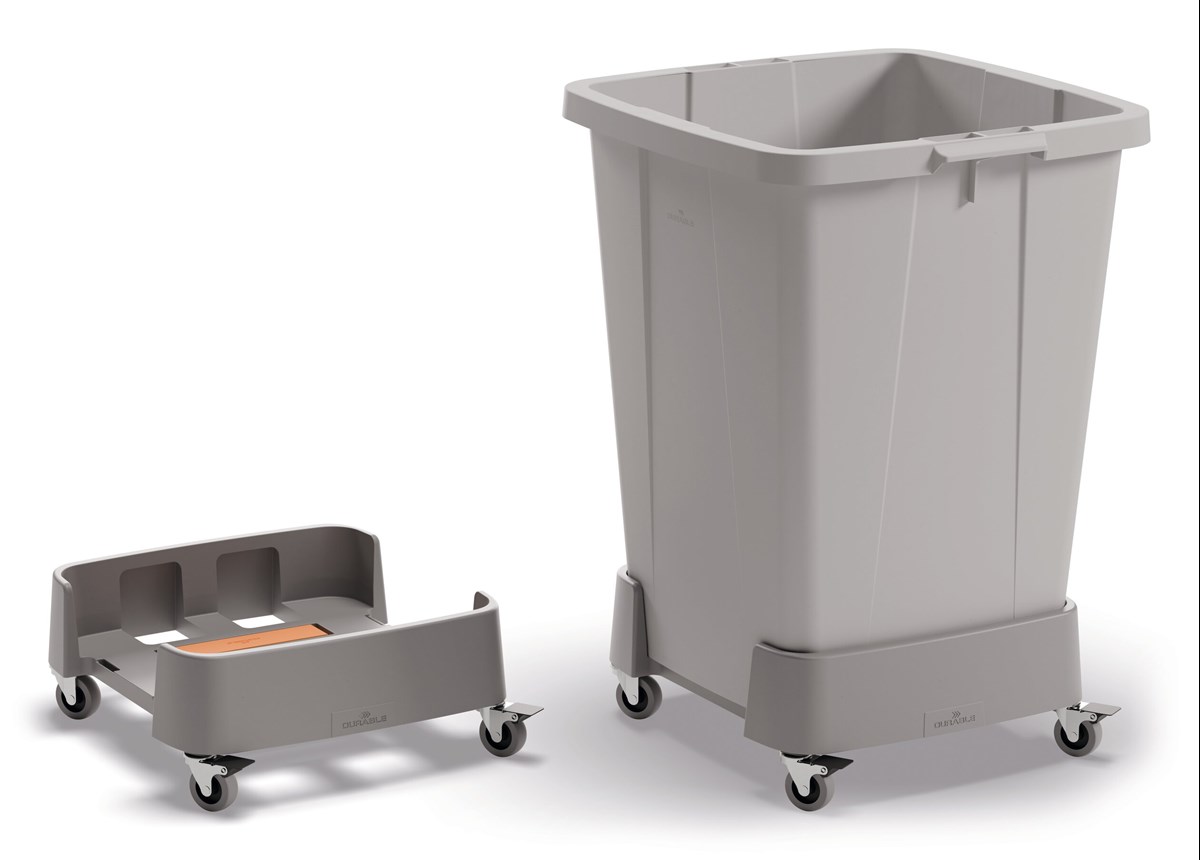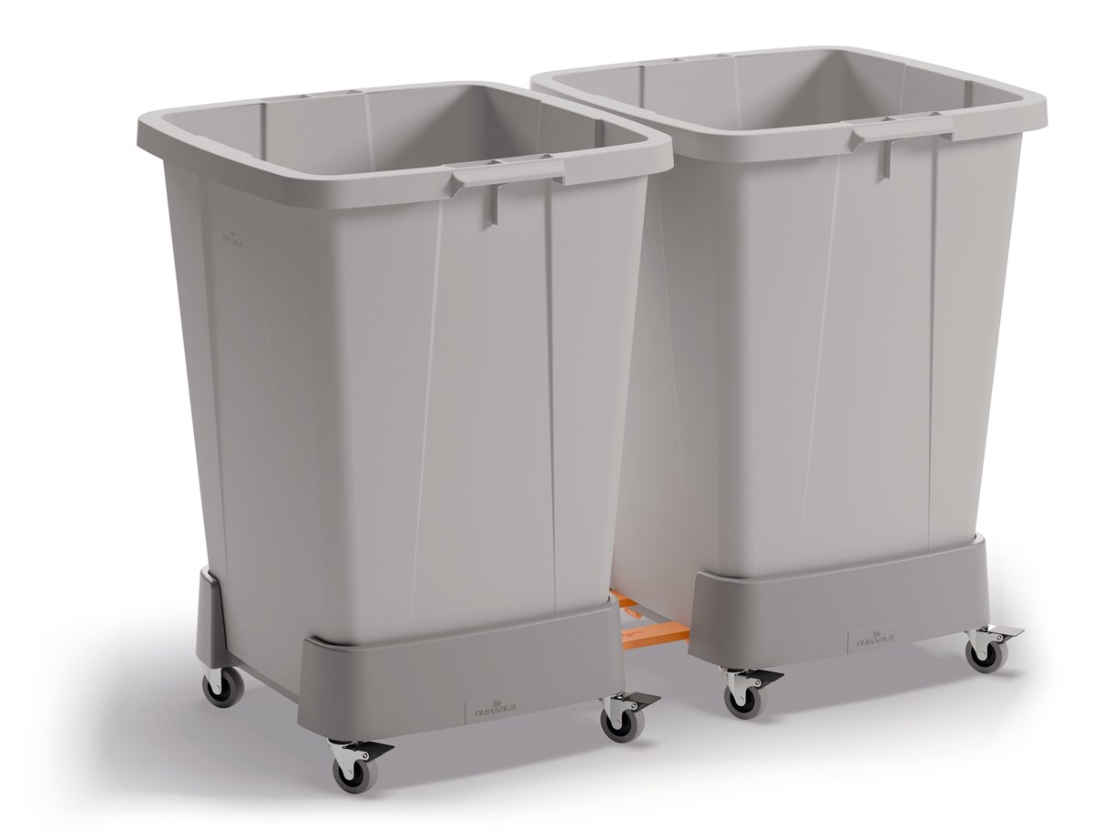 DURABIN 90 rPP gör det lätt att flytta en fylld DURABIN 90 liters soptunna på ett smidigt sätt. Det kan t.ex. vara råmaterial, material som ska återvinnas eller matavfall som ska samlas ihop på annan plats. För inomhus- och skyddad utomhusanvändning på plana ytor i lagerlokaler, produktionsområden, matsalar etc. Upp till 4 rullplattor - för både 60 och 90 liters tunnor, kan kopplas ihop med hjälp av de medföljande och integrerade kopplingarna.