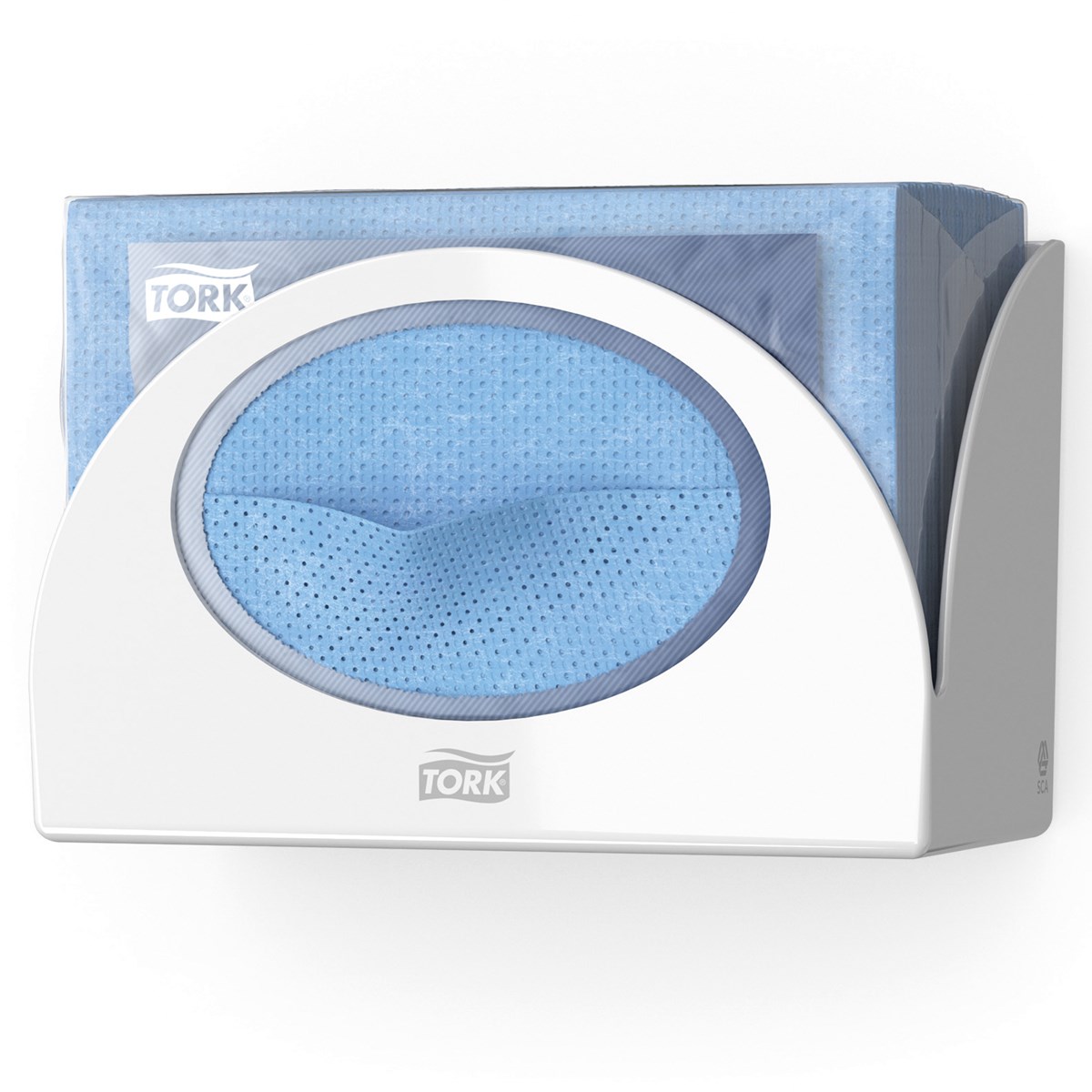 Smidig liten hållare som ger en torkduk i taget för att minska förbrukningen och mängden avfall. Kan monteras på olika håll eller placeras på en disk. Flexibla monteringsalternativ, sugkopp eller magneter, finns om du inte vill borra hål i väggen.