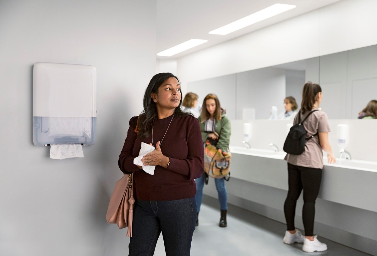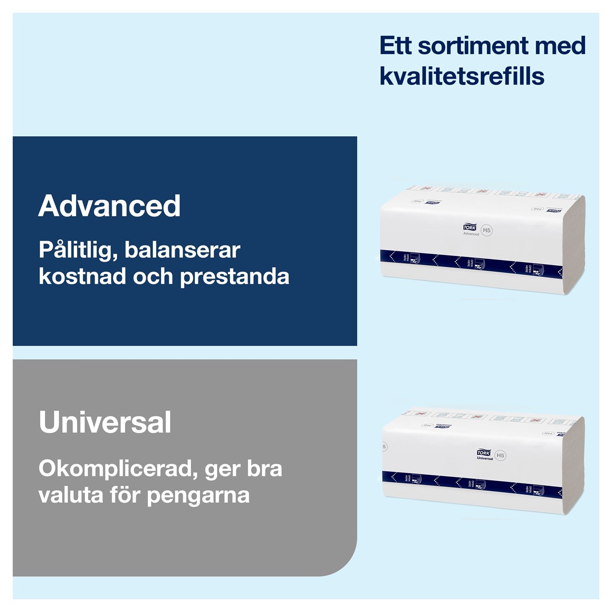 Hög kapacitet på 1 230 handdukar För välbesökta toalettutrymmen Smidig utmatning på bara tre sekunder Extra slimmad och utrymmessnål design Refillhanddukarna är komprimerade med 50 % vilket underlättar förvaring