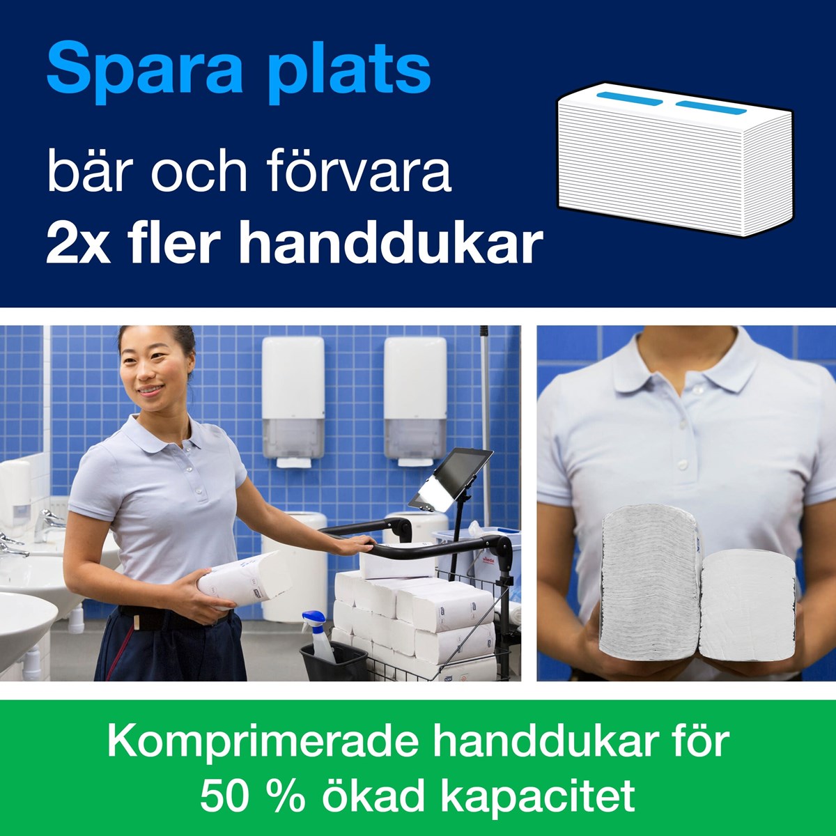 Handdukarna är komprimerade för en ökad kapacitet på 250%