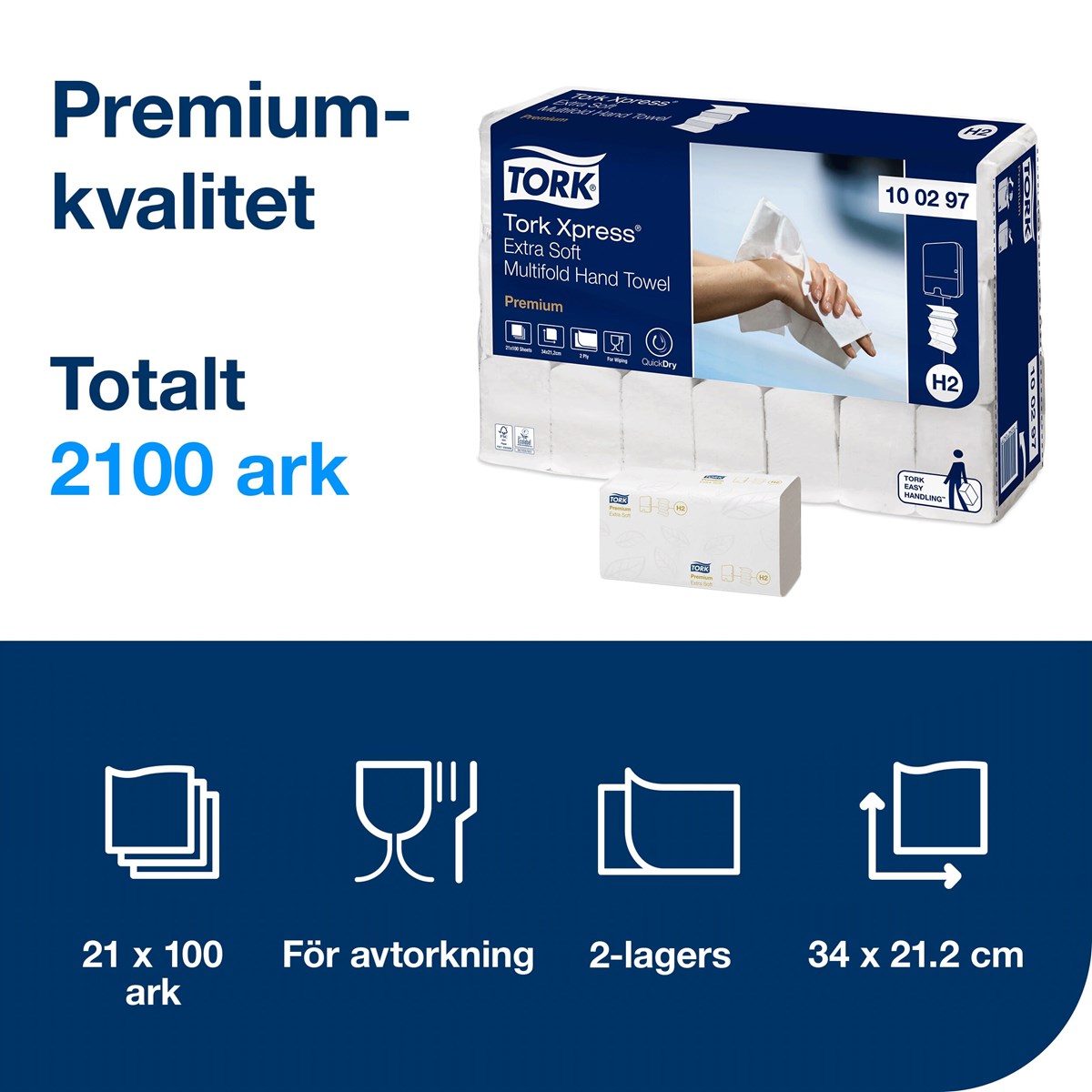 Pappershanddukar Tork Xpress Extra mjuk Multifold H2 2100/fp