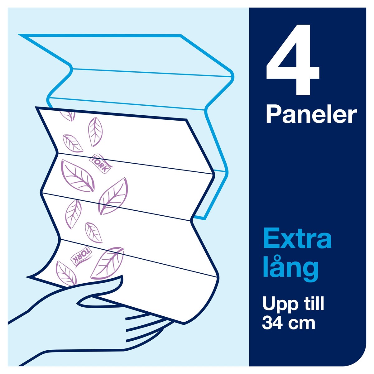 Quick Dry-papper - för effektivare avtorkning med mindre avfall Dekorativt, blått mönster för ett bra visuellt intryck Perfekt för toalettrymmen med medelhög besöksfrekvens EU-miljömärkning som garanterar en lägre miljöpåverkan än jämförbara produkter ISEGA-märkning, godkänner lämpligheten för kortvarig kontakt med livsmedel
