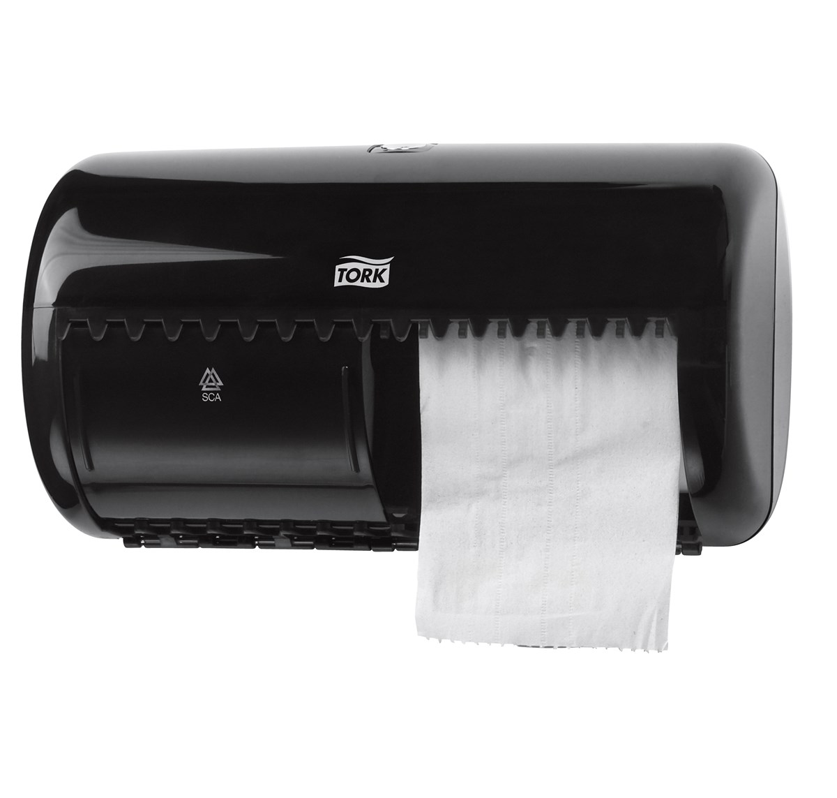 Funktionell hållare med tänder för enkel avrivning. För två rullar, en rulle åt gången används. Mått: (HxBxD) 15,8x28,6x15,3 cm).